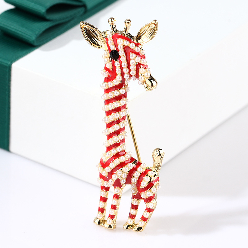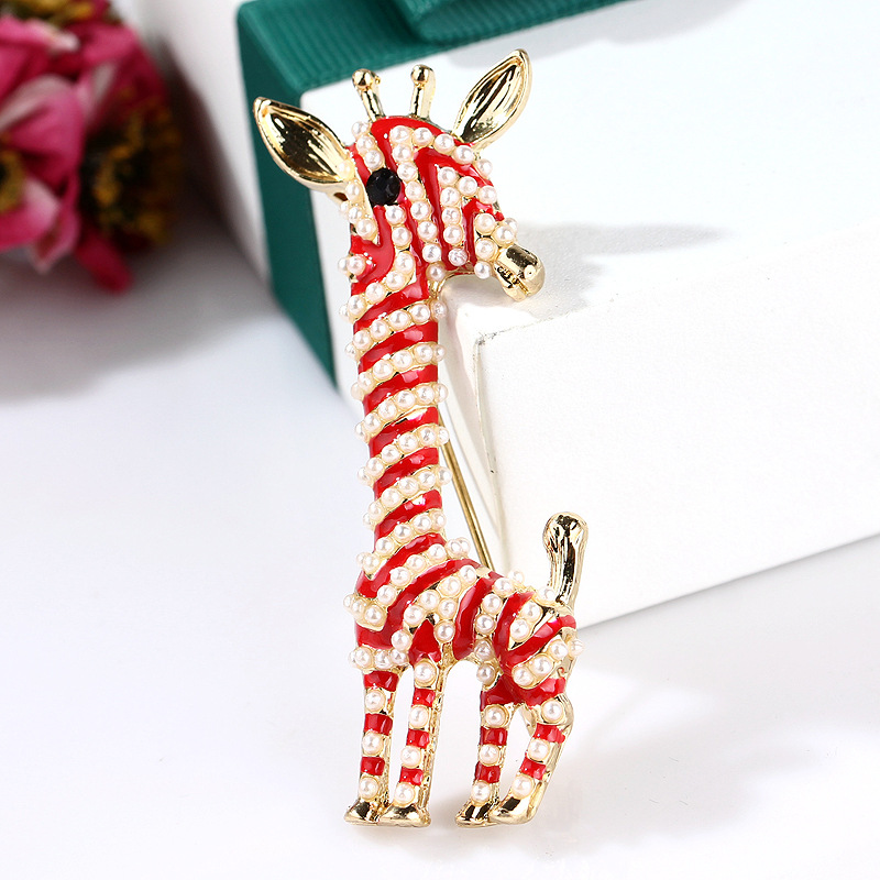 Plastica perla spilla, lega in zinco, with perla in plastica, giraffa, placcato color oro, gioielli di moda & unisex & smalto, nessuno, Venduto da PC