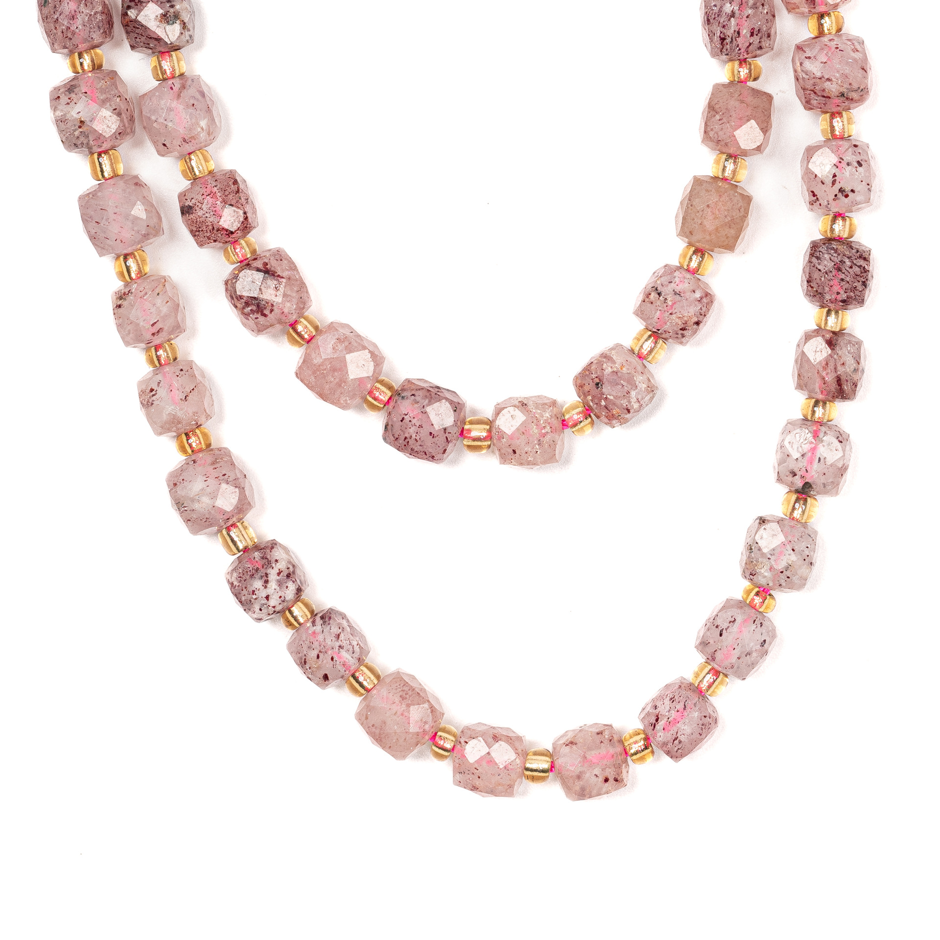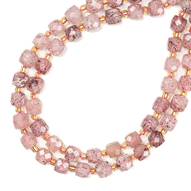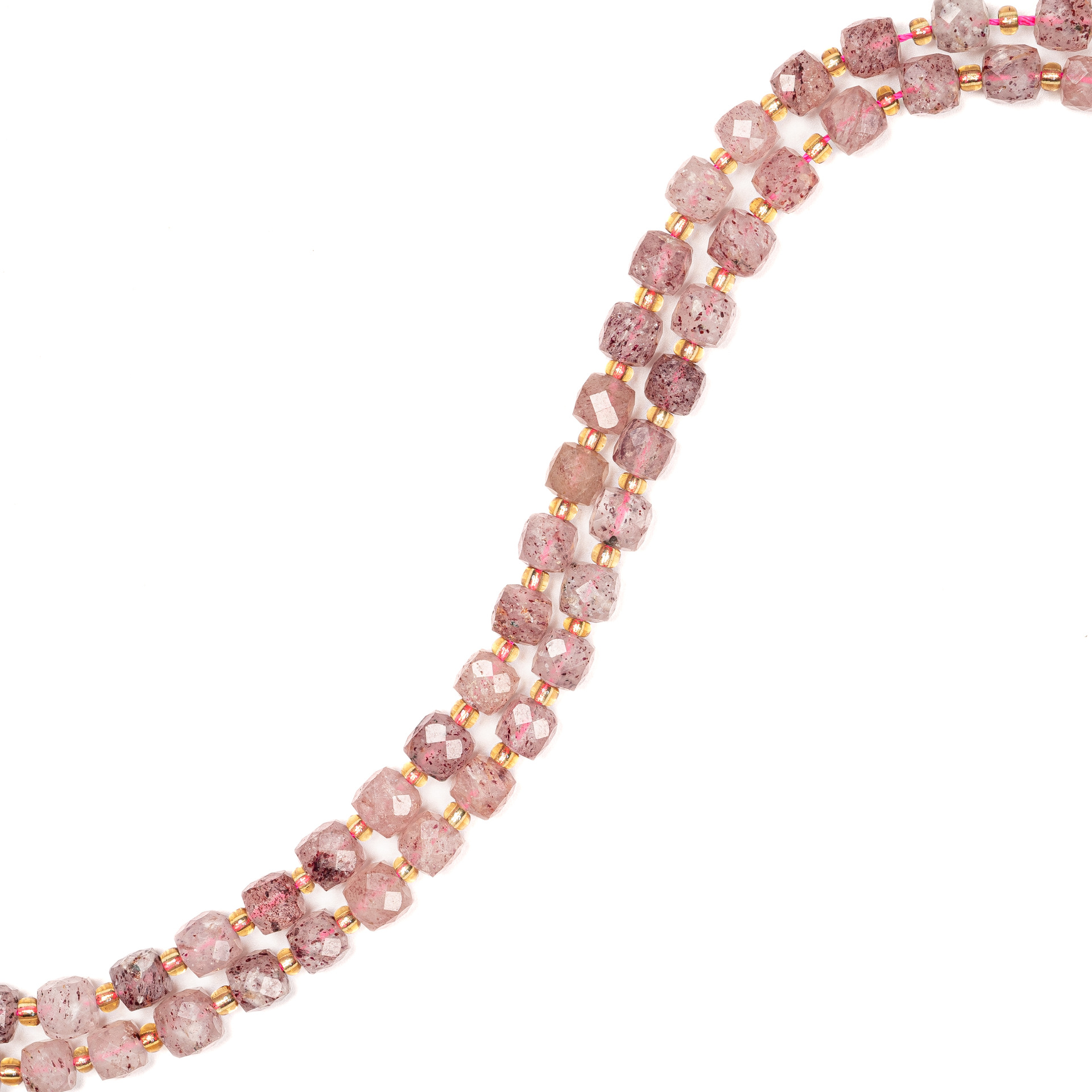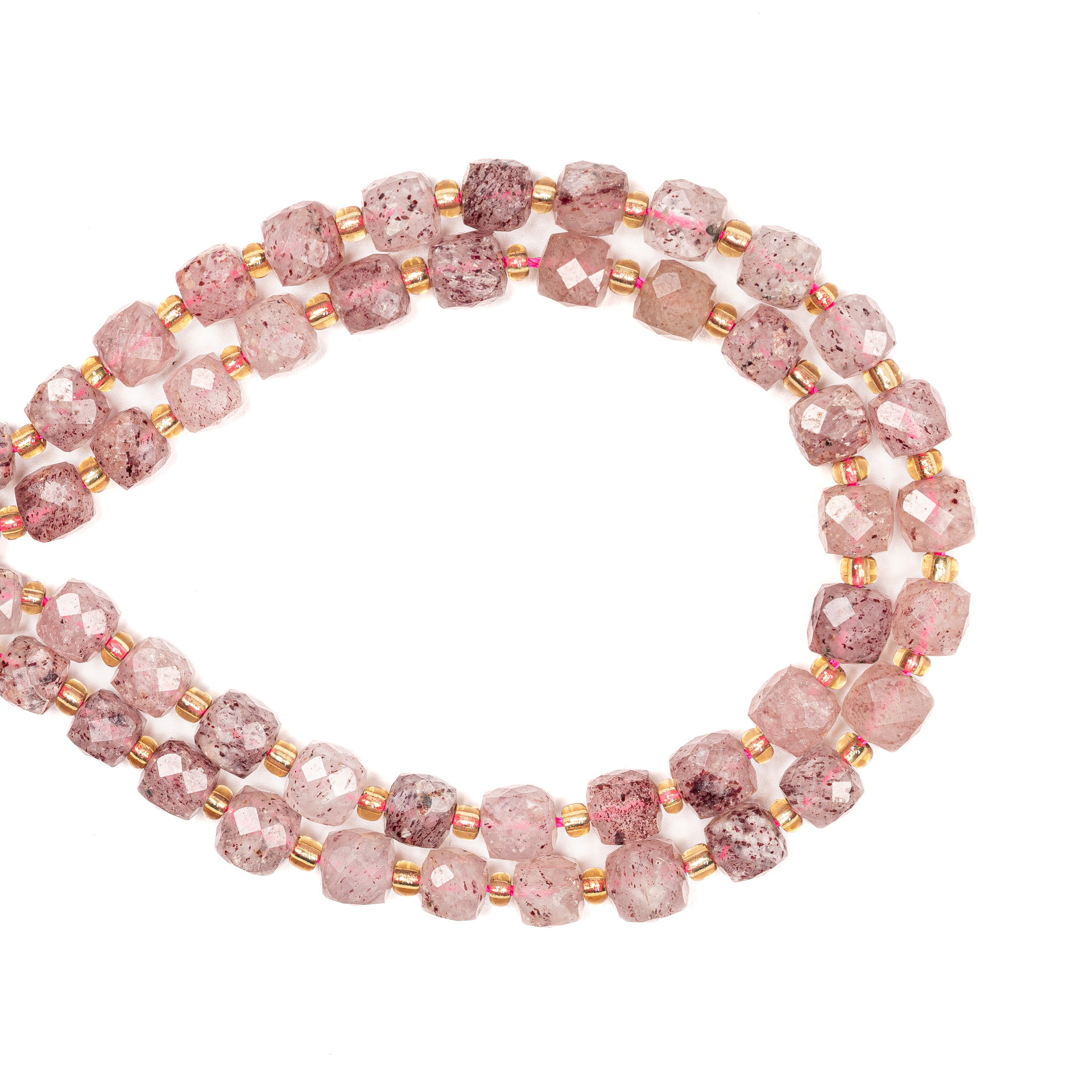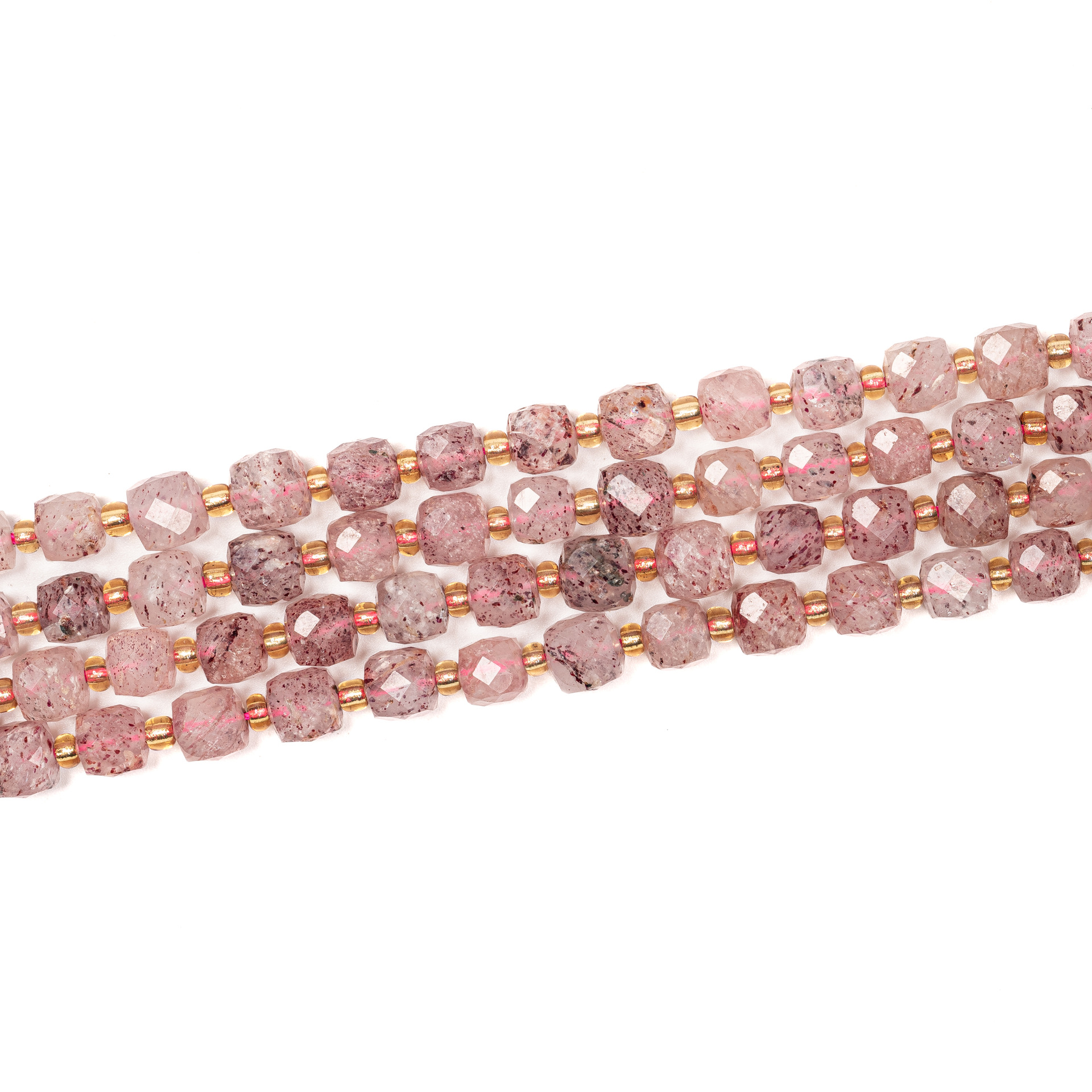 Perline di quarzo naturale, Strawberry Quartz, Quadrato, DIY, rosa, 7mm, Venduto per Appross. 38 cm filo