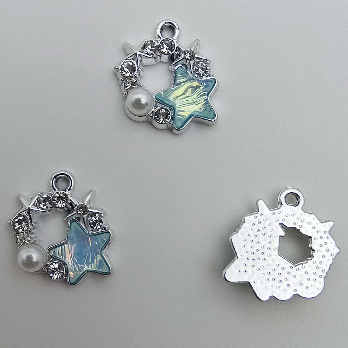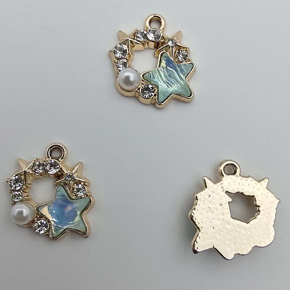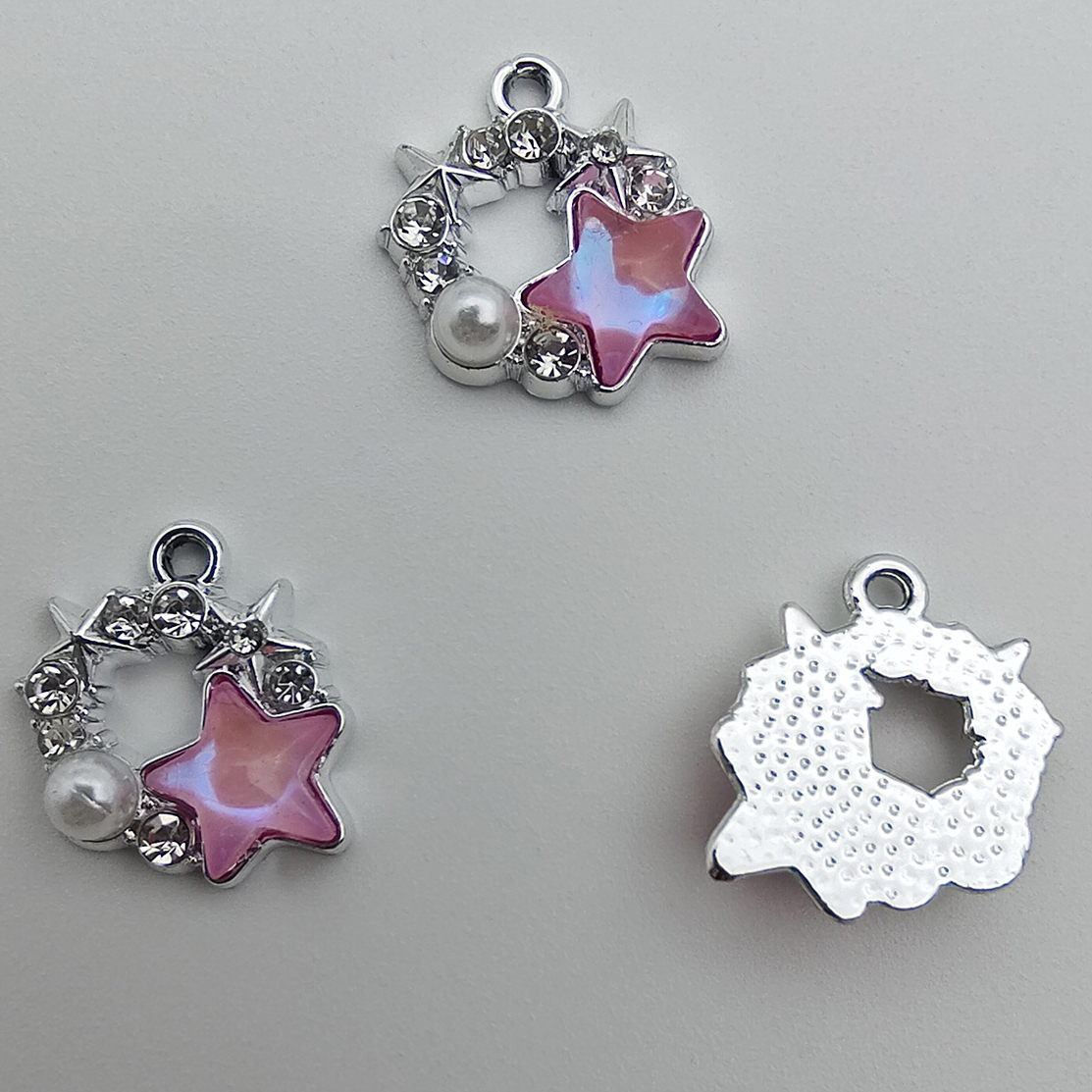 Resina Zinc Alloy pendenti, lega in zinco, with resina & perla in plastica, Stella, placcato, DIY & con strass & cavo, nessuno, 17x15x4.60mm, 100PC/borsa, Venduto da borsa