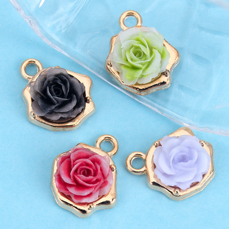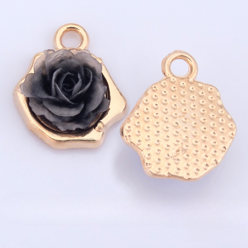 Resina Zinc Alloy pendenti, lega in zinco, with resina, Rose, placcato color oro, DIY, nessuno, 12x14mm, Venduto da PC