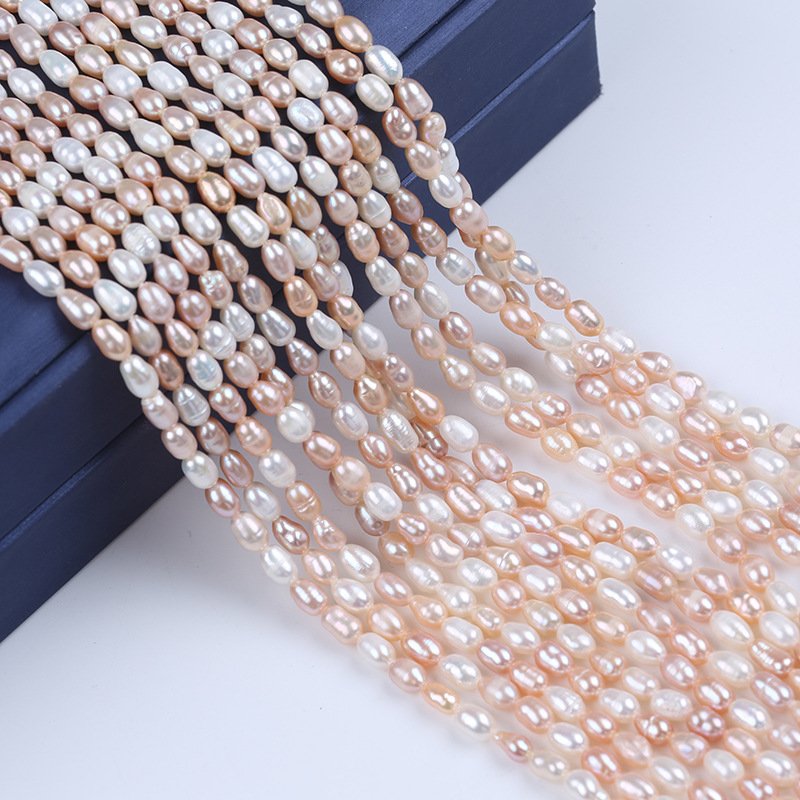 Riso coltivato in perla d'acqua dolce, perla d'acquadolce coltivata naturalmente, DIY, nessuno, 4-5mm, Venduto per 37 cm filo
