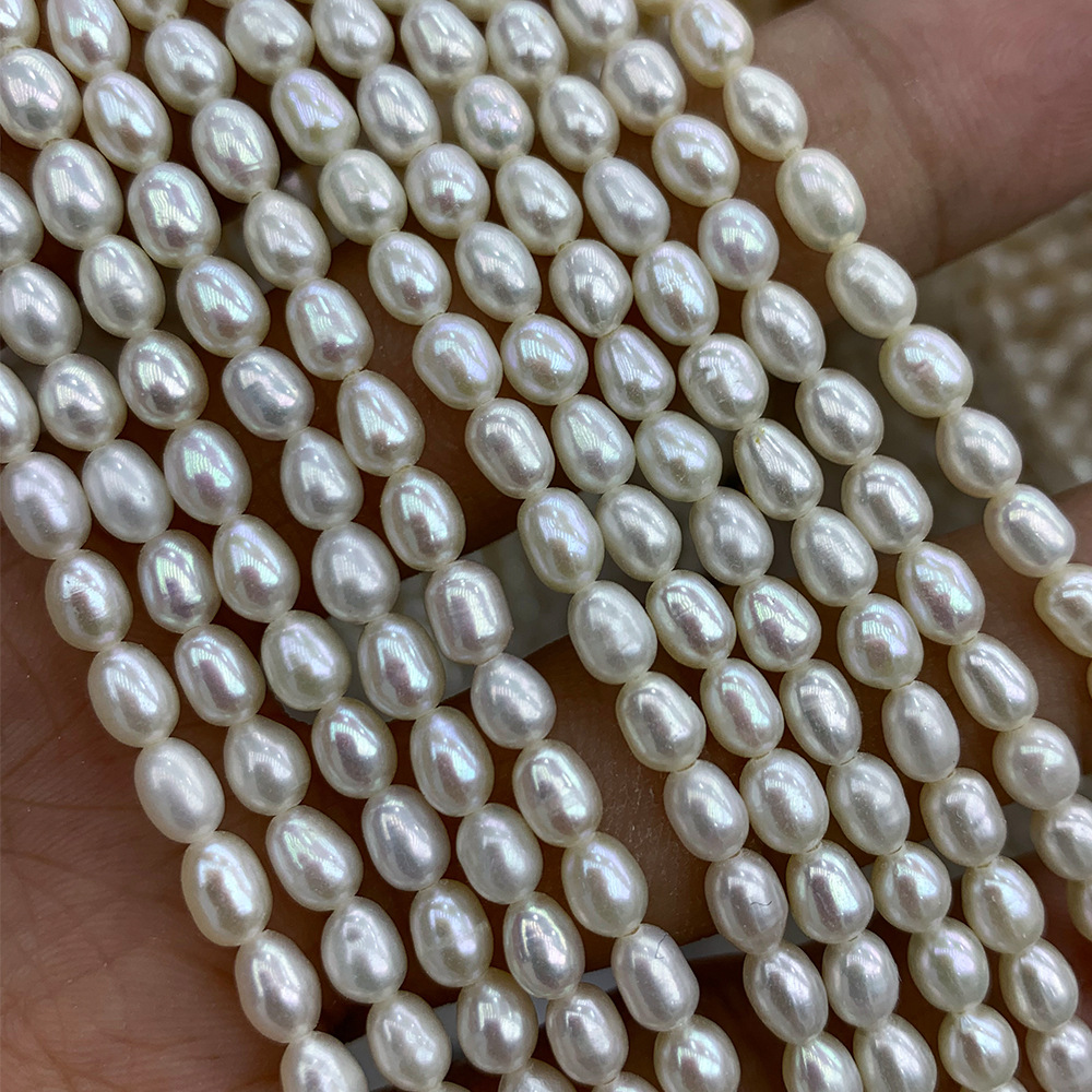 Riso coltivato in perla d'acqua dolce, perla d'acquadolce coltivata naturalmente, DIY, bianco, 3-3.5mm, Venduto per 37 cm filo