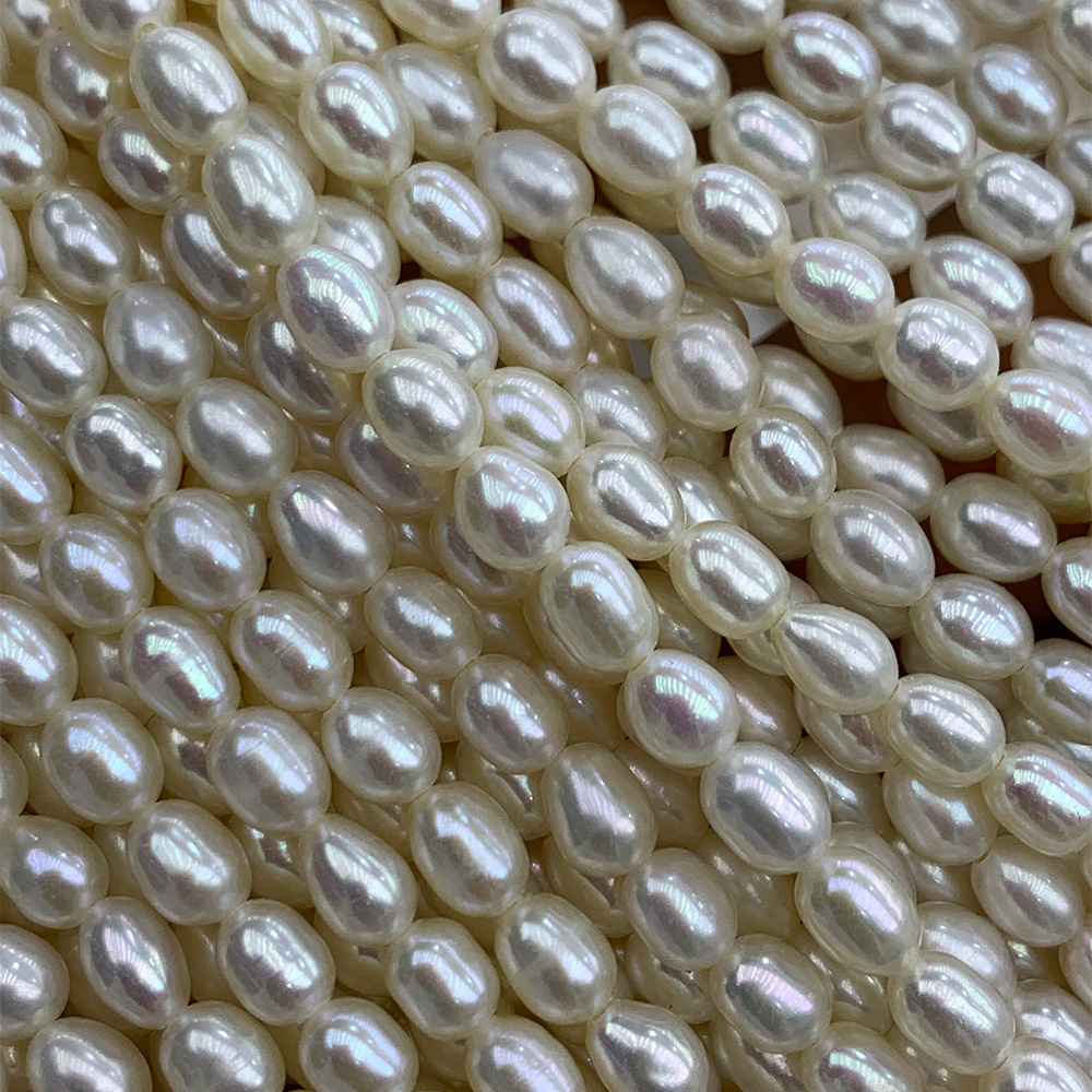 Riso coltivato in perla d'acqua dolce, perla d'acquadolce coltivata naturalmente, DIY, bianco, 4+5MM, Venduto per 37 cm filo