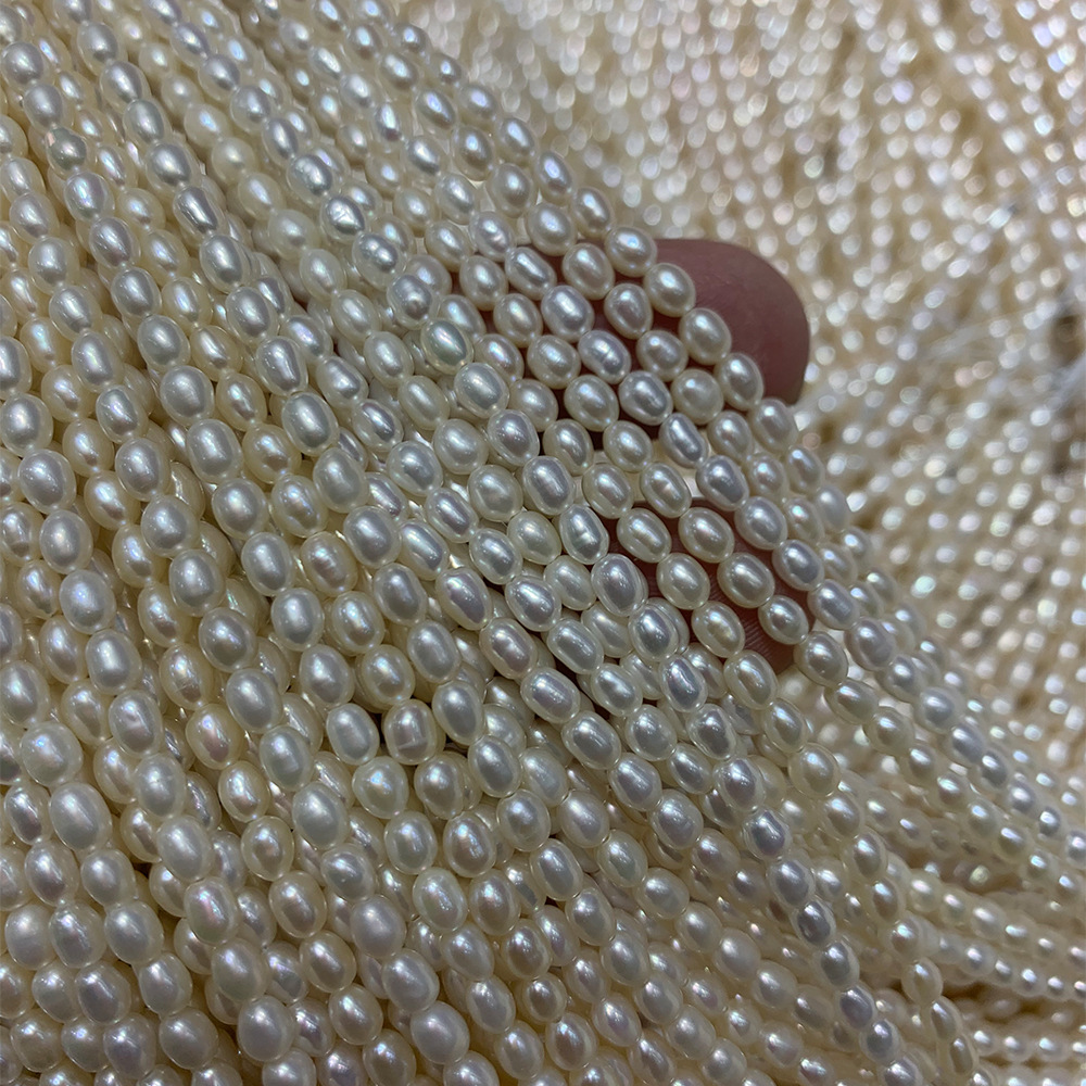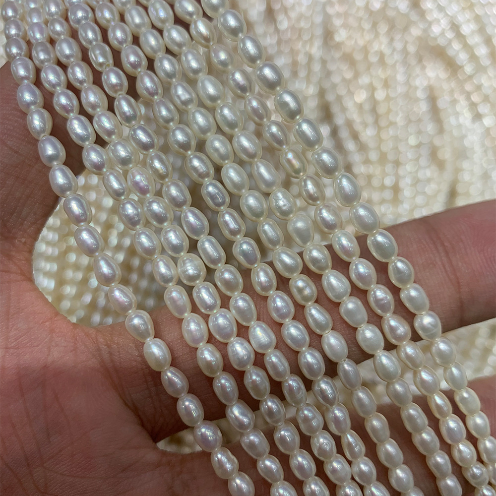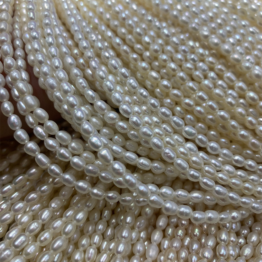 Riso coltivato in perla d'acqua dolce, perla d'acquadolce coltivata naturalmente, DIY, bianco, 3-4MM, Venduto per 37 cm filo
