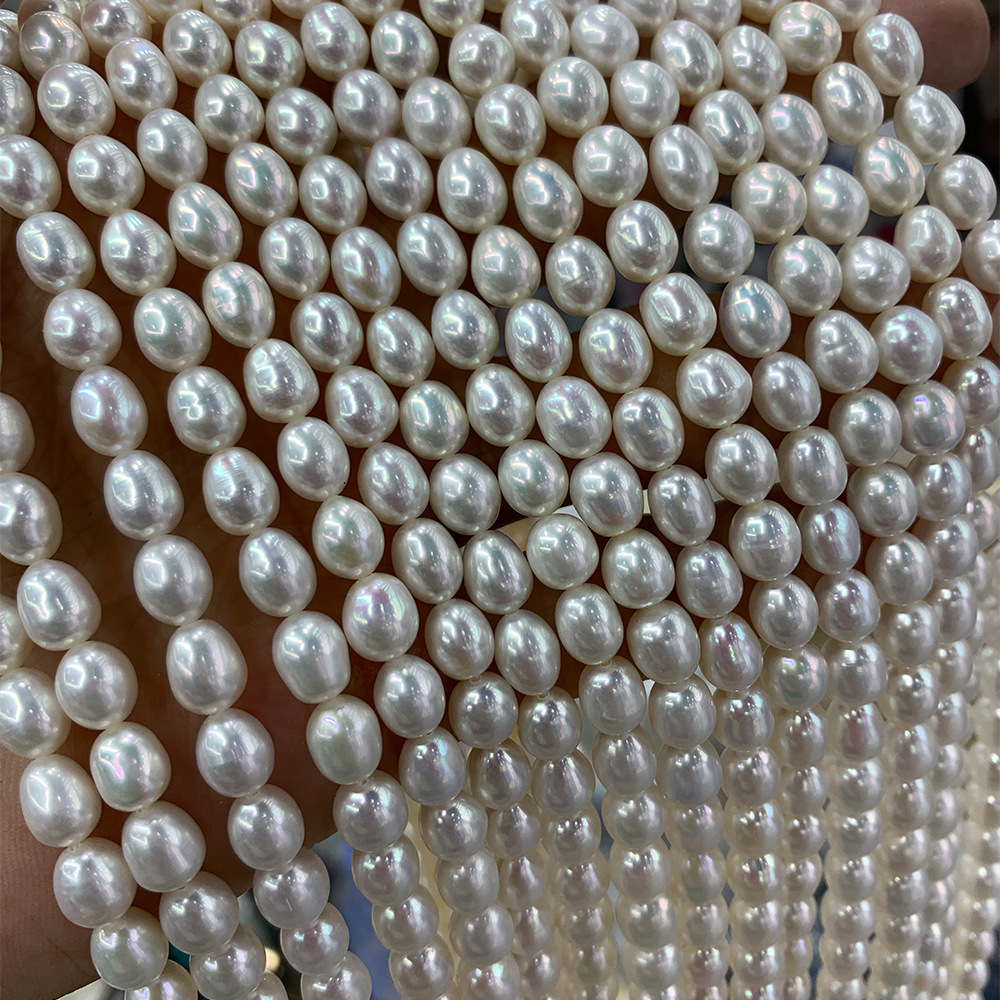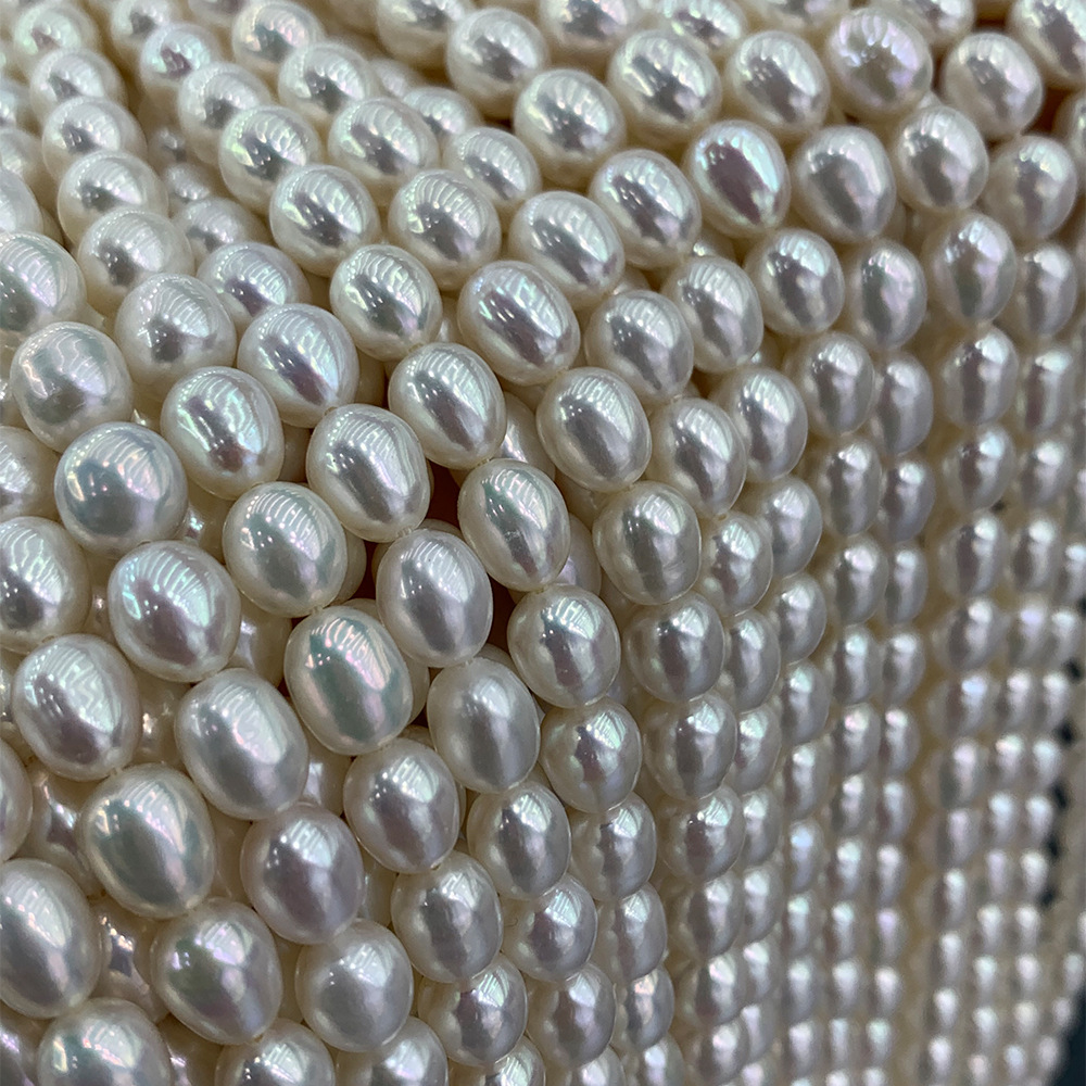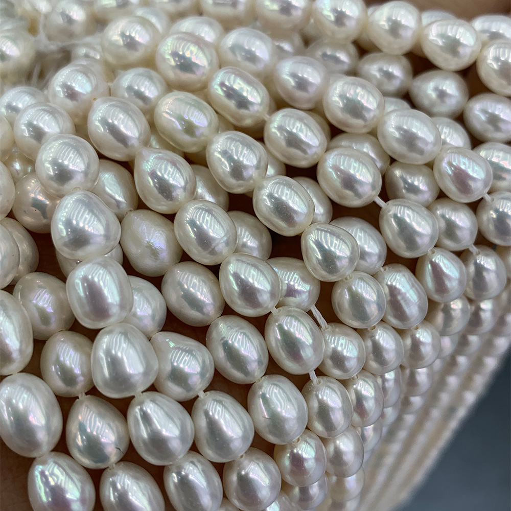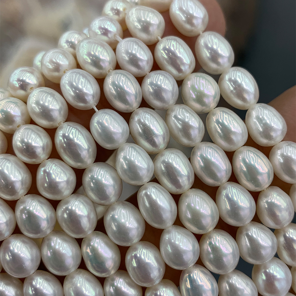 Riso coltivato in perla d'acqua dolce, perla d'acquadolce coltivata naturalmente, DIY, bianco, 7-8MM, Venduto per 37 cm filo