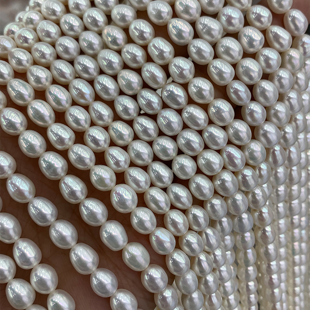 Riso coltivato in perla d'acqua dolce, perla d'acquadolce coltivata naturalmente, DIY, bianco, 3-3.5mm, Venduto per 37 cm filo