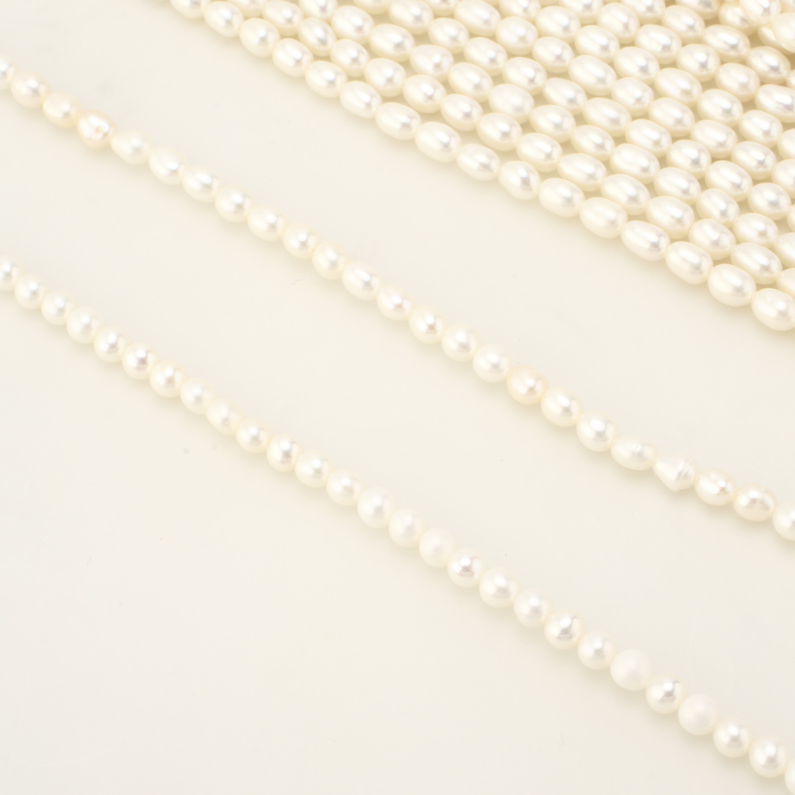 Riso coltivato in perla d'acqua dolce, perla d'acquadolce coltivata naturalmente, gioielli di moda, bianco, 4-4.5mm, Venduto per 45 cm filo
