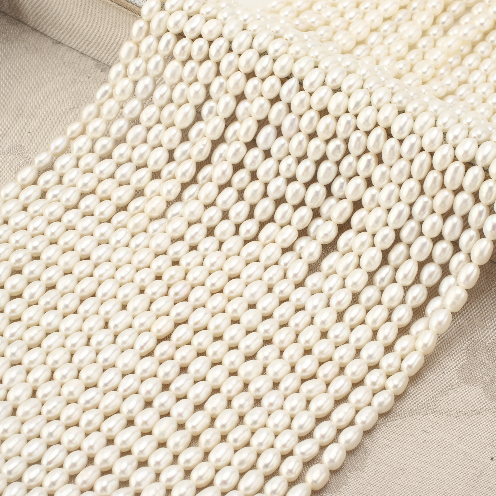 Riso coltivato in perla d'acqua dolce, perla d'acquadolce coltivata naturalmente, DIY, bianco, 3-3.5mm, Venduto per 37 cm filo