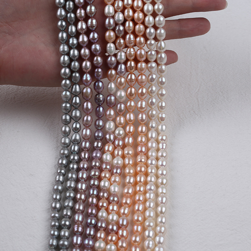 Riso coltivato in perla d'acqua dolce, perla d'acquadolce coltivata naturalmente, DIY, nessuno, 7-8mm, Venduto per 36 cm filo
