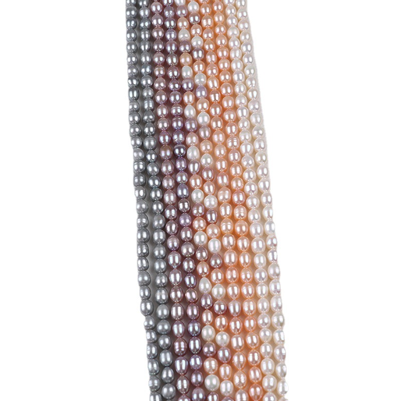 Riso coltivato in perla d'acqua dolce, perla d'acquadolce coltivata naturalmente, DIY, bianco, 3-3.5mm, Venduto per 37 cm filo
