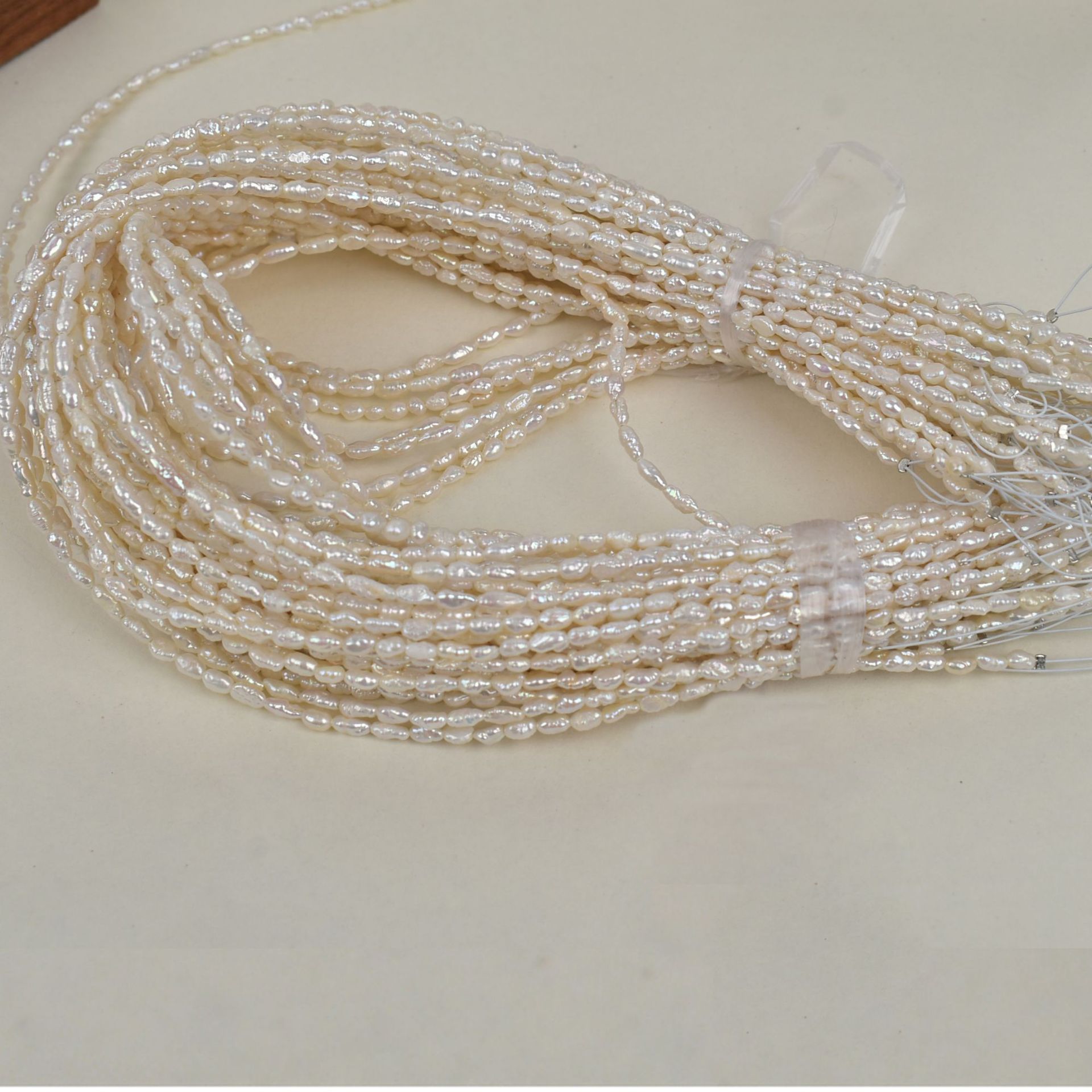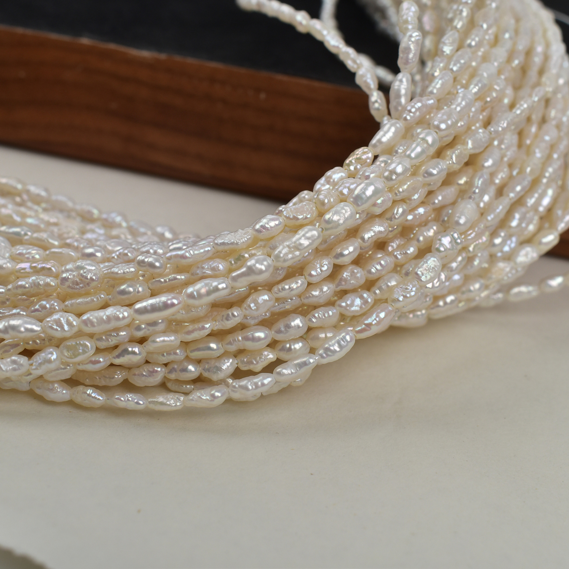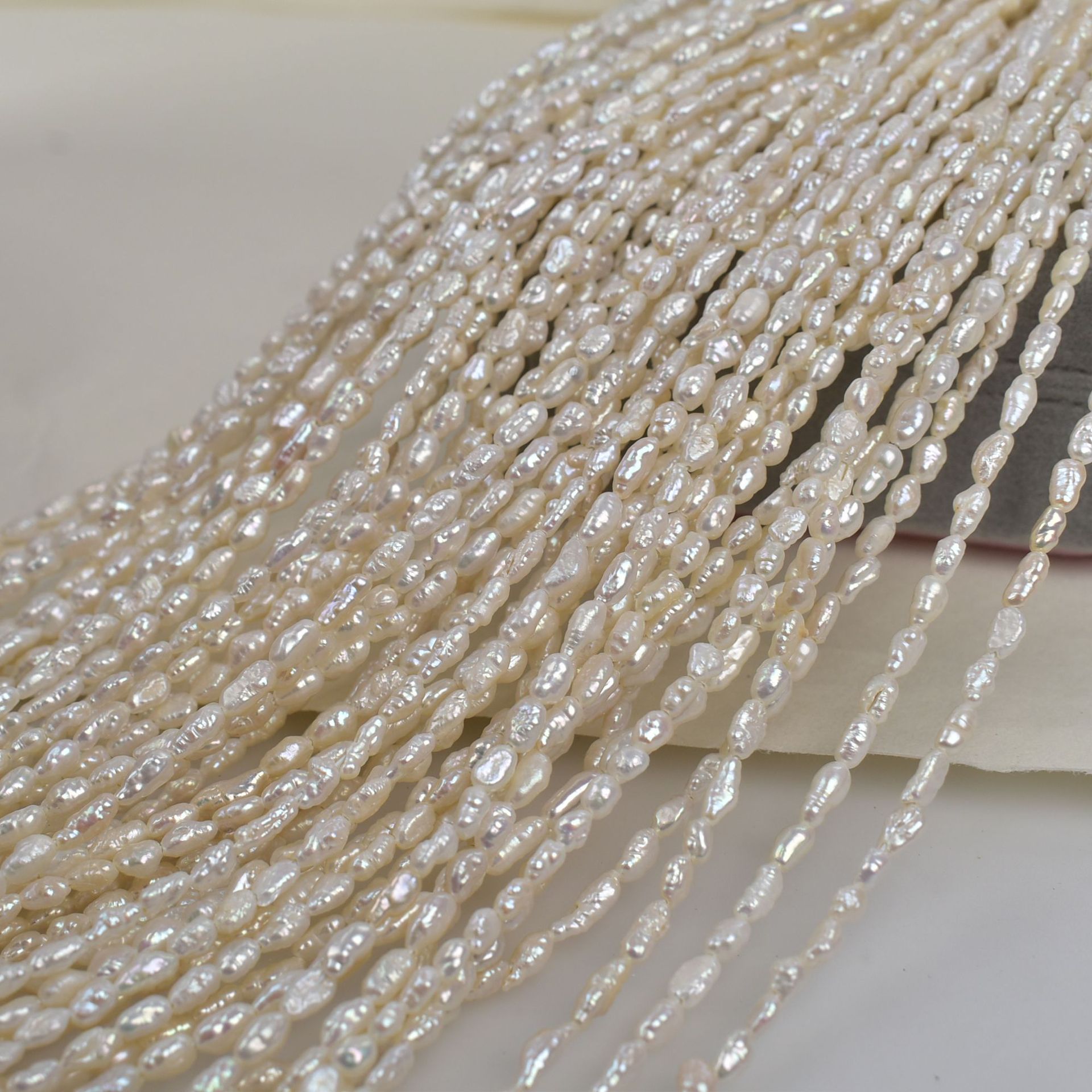 Riso coltivato in perla d'acqua dolce, perla d'acquadolce coltivata naturalmente, DIY, bianco, 3-4mm, Venduto per 38 cm filo