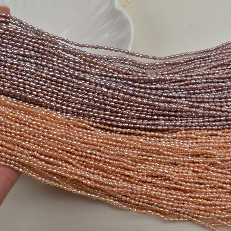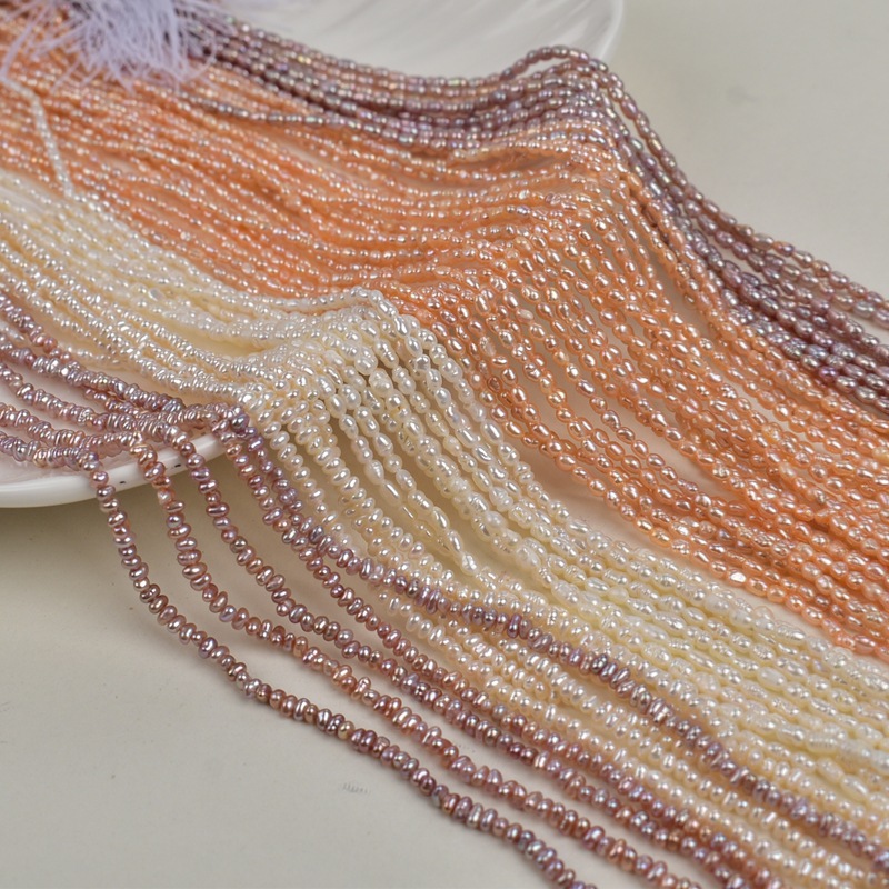 Riso coltivato in perla d'acqua dolce, perla d'acquadolce coltivata naturalmente, DIY, nessuno, 2-3mm, Venduto per 36 cm filo