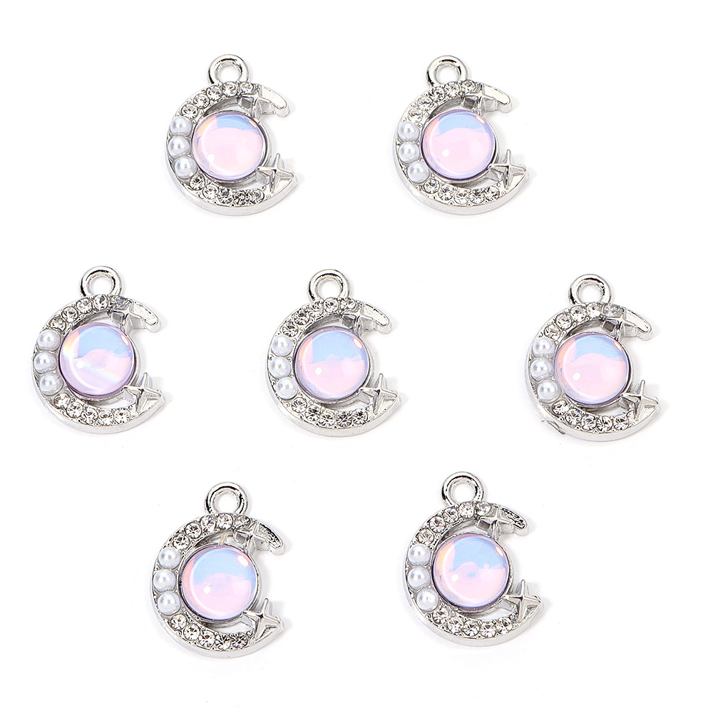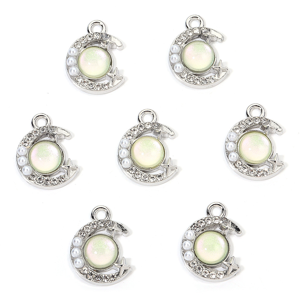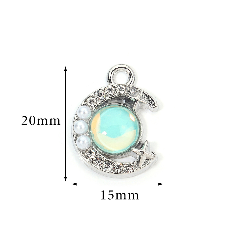 Resina Zinc Alloy pendenti, lega in zinco, with cubico zircone & perla in plastica, Luna, placcato color argento, DIY, nessuno, assenza di nichel,piombo&cadmio, 15x20mm, 100PC/borsa, Venduto da borsa
