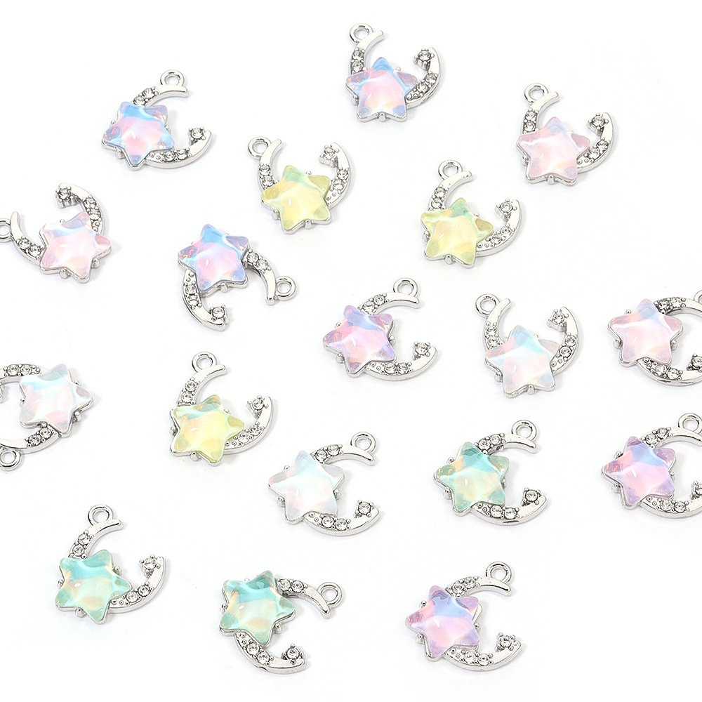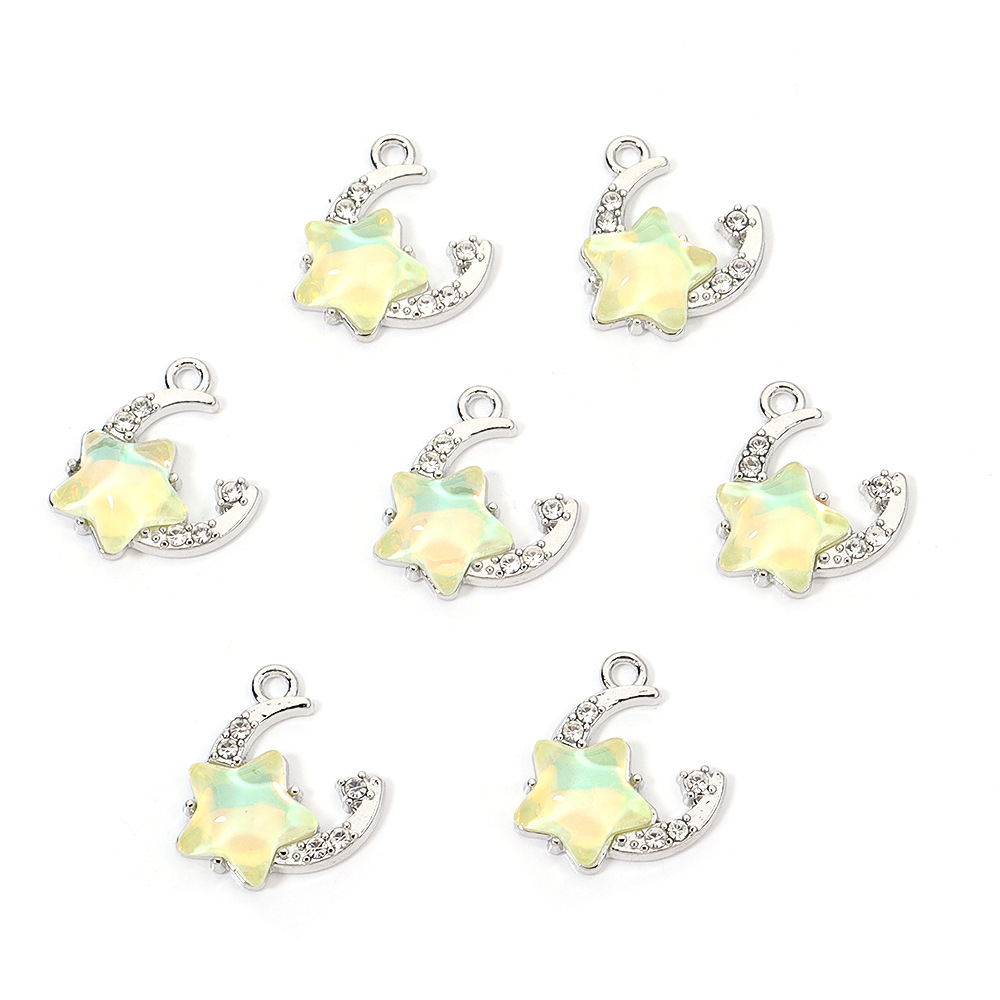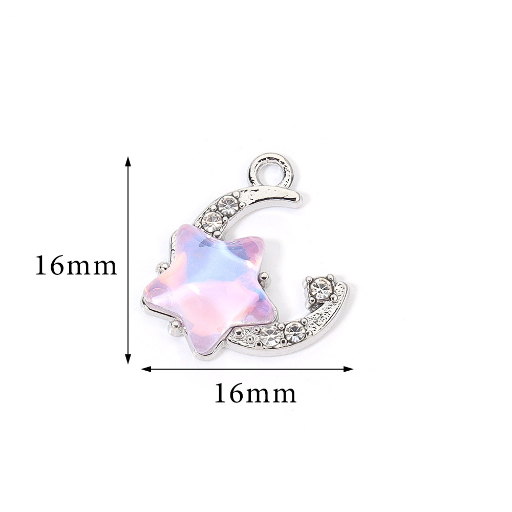 Resina Zinc Alloy pendenti, lega in zinco, with resina, Luna, placcato color argento, DIY & con strass, nessuno, assenza di nichel,piombo&cadmio, 16x16mm, 100PC/borsa, Venduto da borsa
