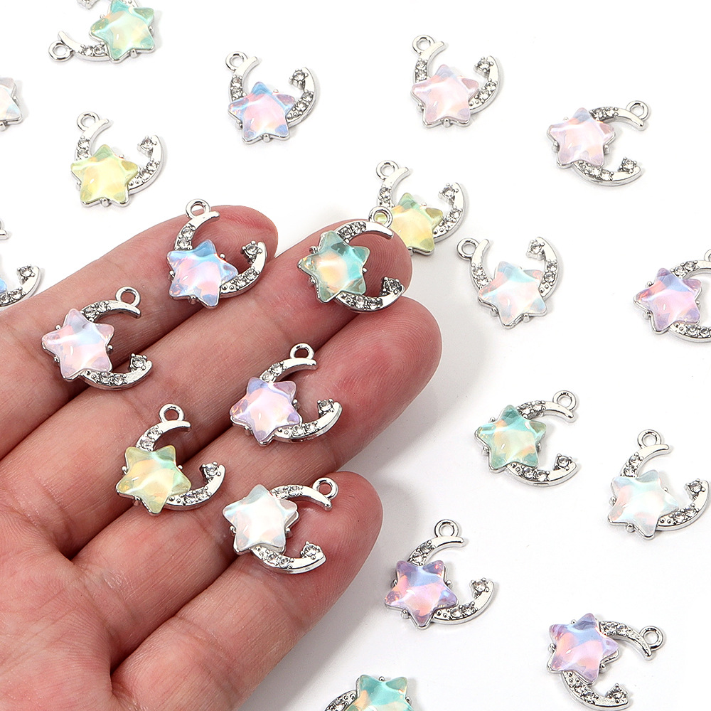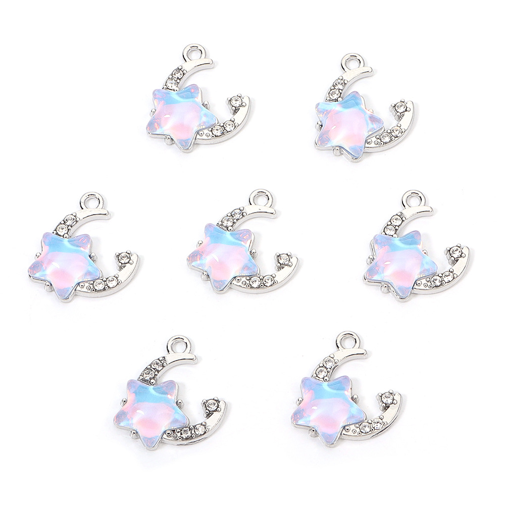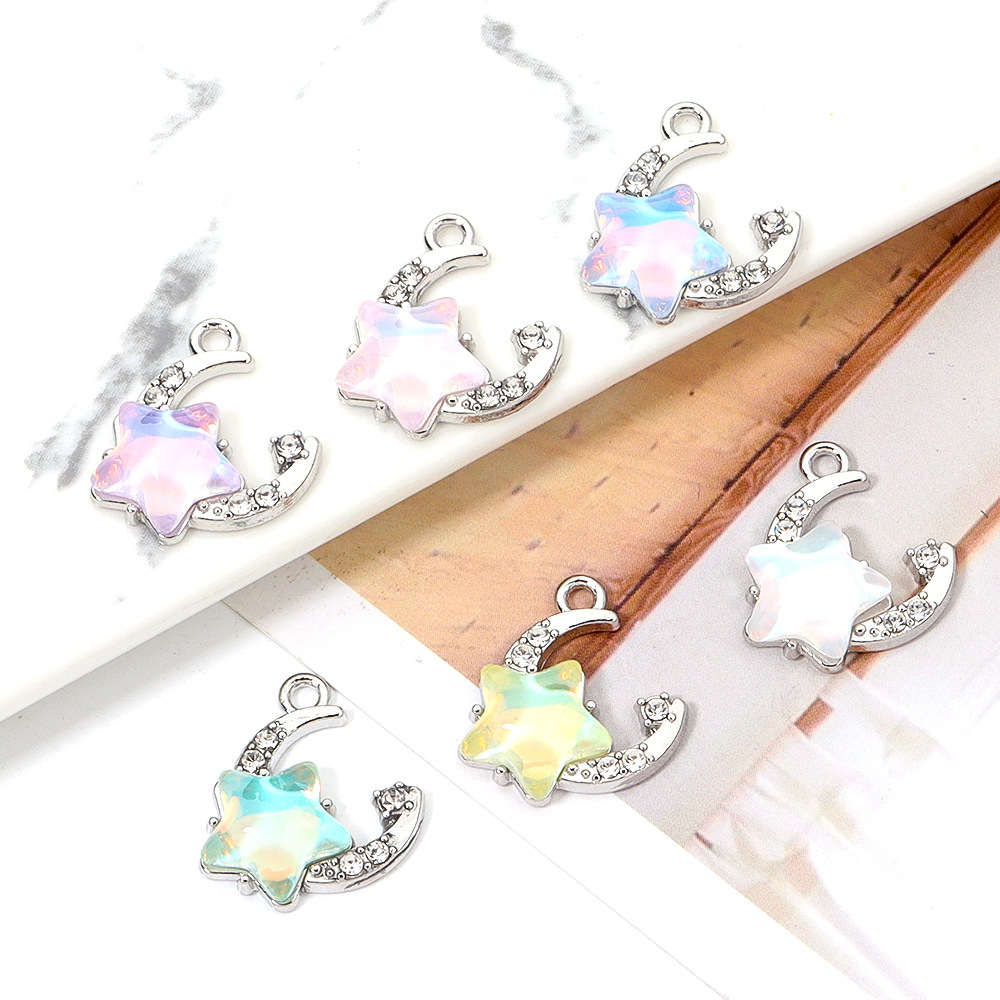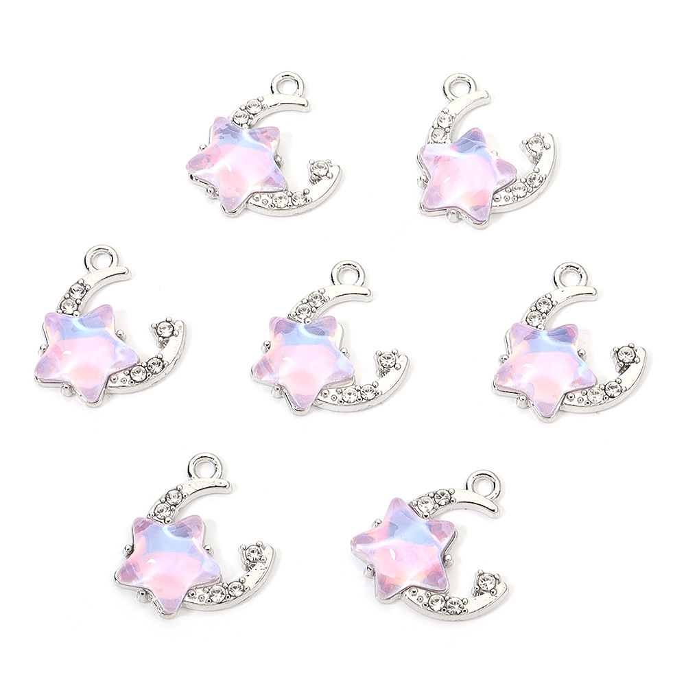 Resina Zinc Alloy pendenti, lega in zinco, with resina, Luna, placcato color argento, DIY & con strass, nessuno, assenza di nichel,piombo&cadmio, 16x16mm, 100PC/borsa, Venduto da borsa