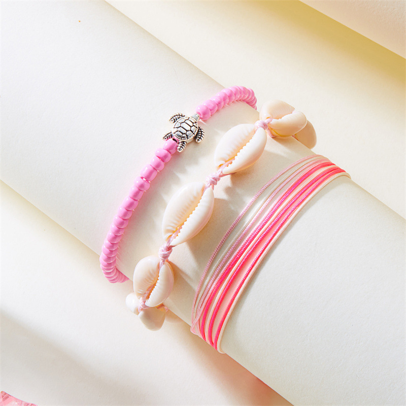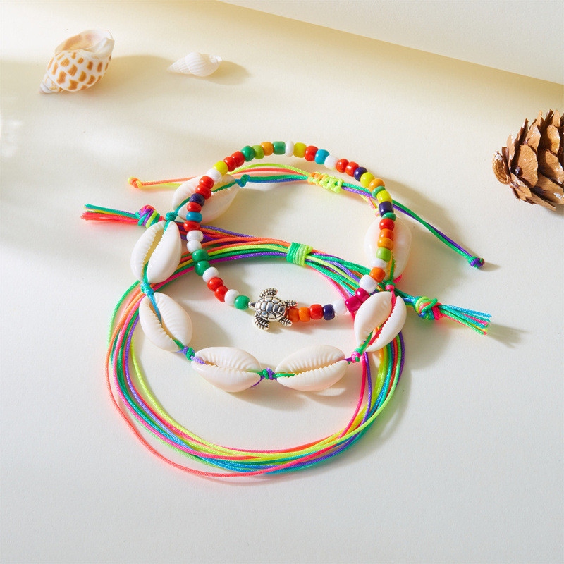 Seedbead braccialetto, with corda di cera & conchiglia, placcato color oro, tre pezzi & gioielli di moda, nessuno, 3PC/set, Venduto da set