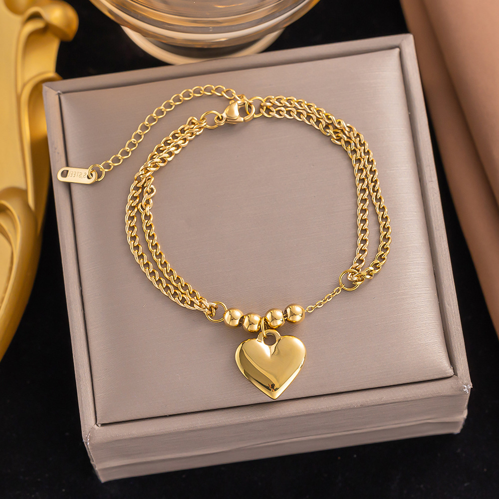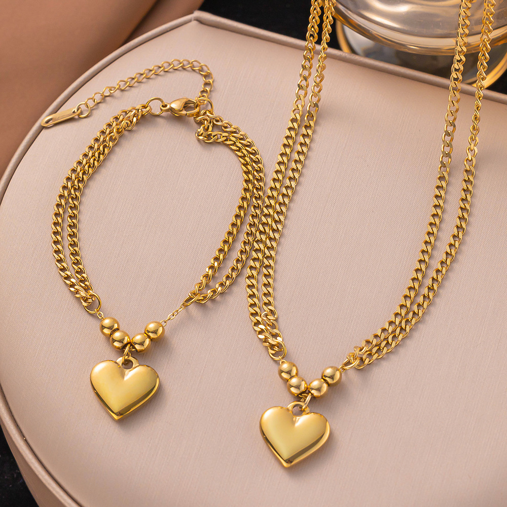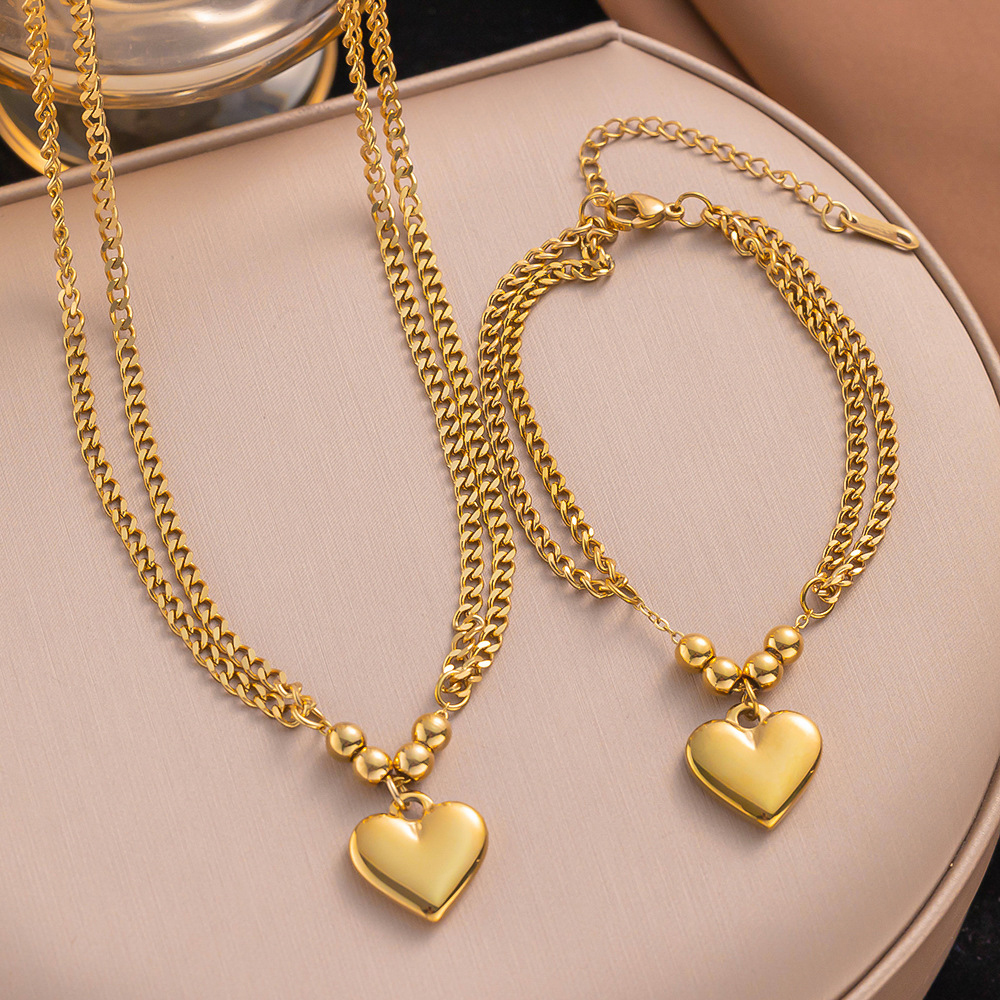Set di gioielli in acciaio inox, 304 acciaio inox, placcato, Doppio strato & stili diversi per la scelta & per la donna, dorato, Necklace size:40-5cm, bracelet size:16-5cm., Venduto da PC