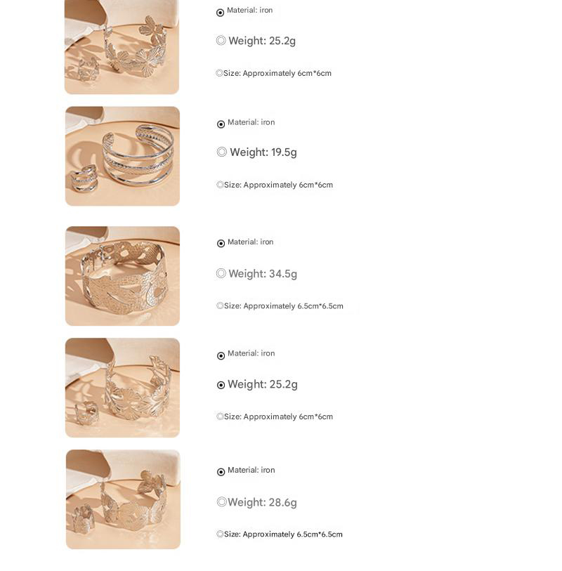 2:Bracelet-silver ginkgo leaf (set of two)3:Bracelet-silver five-leaf flower (set of two)4:Bracelet - silver three layers (set of two)5:Bracelet-silver butterfly (set of two)6:Bracelet-silver four leaf flower (set of two)7:Bracelet-silver flower (single)8:Bracelet-silver texture (single)