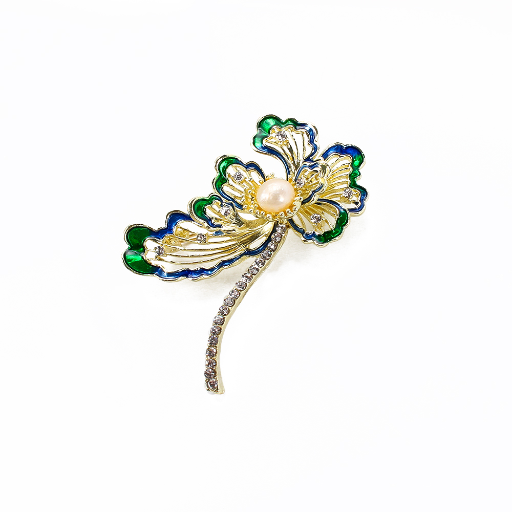 Spille a perle d'acquadolce, lega in zinco, with perla d'acquadolce coltivata naturalmente, Fiore, placcato color oro, gioielli di moda & smalto & con strass, nessuno, 54.40x17.57x63.23mm, Venduto da PC