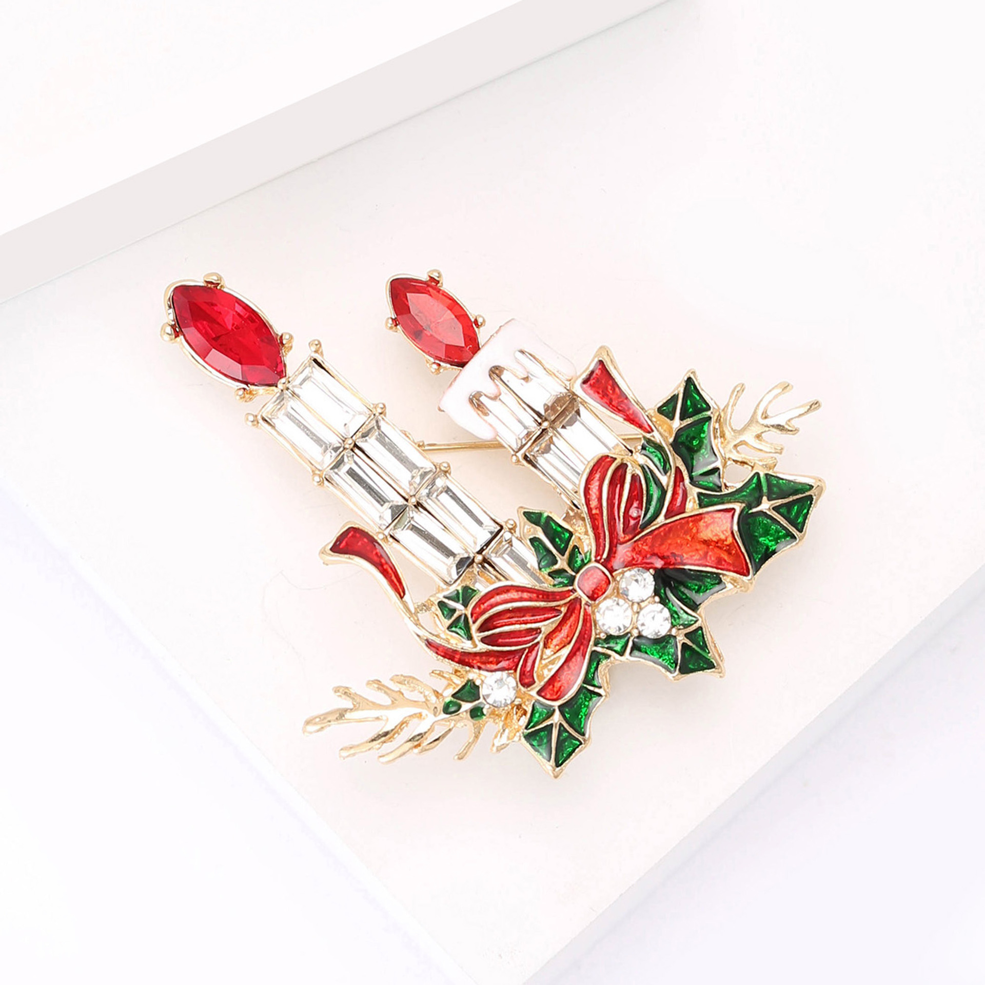 Spille di Natale, lega in zinco, Candela, placcato, gioielli di moda & smalto & con strass, colori misti, Venduto da PC