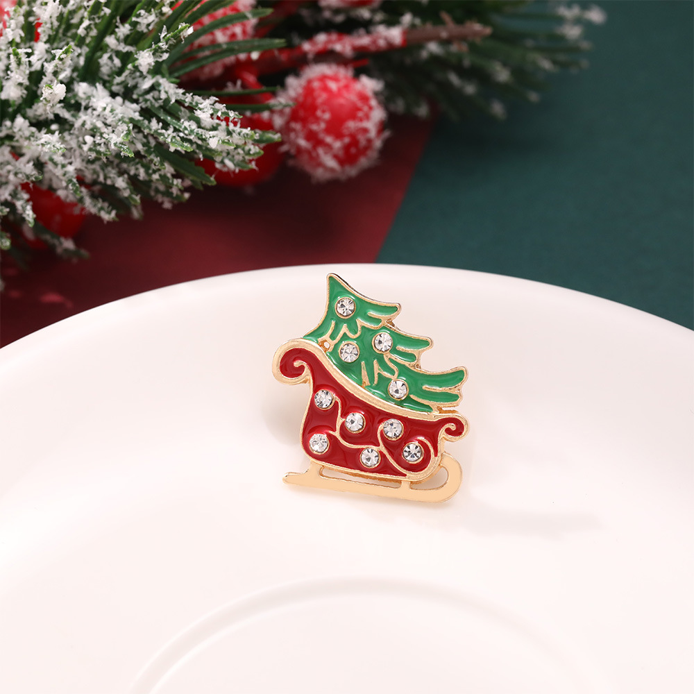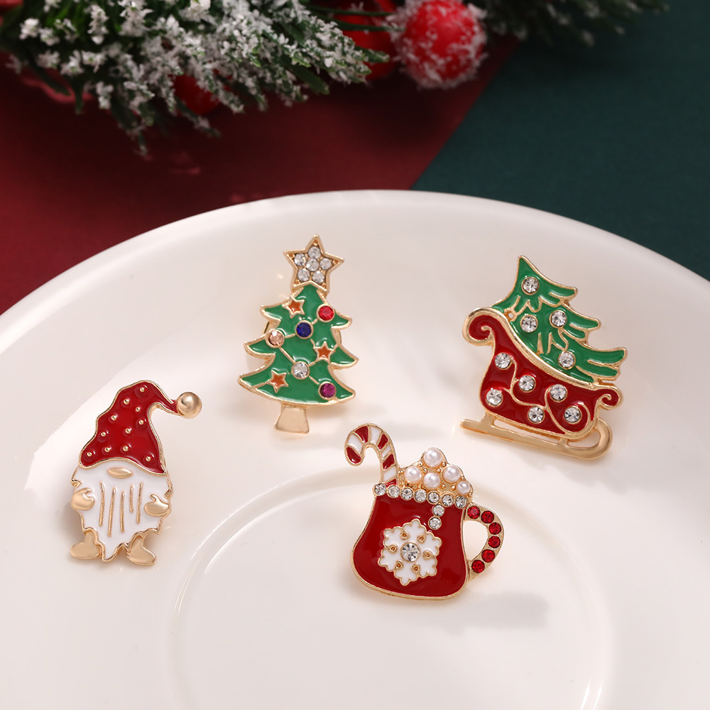Spille di Natale, lega in zinco, placcato color oro, Design natalizio & smalto & con strass, nessuno, Venduto da PC