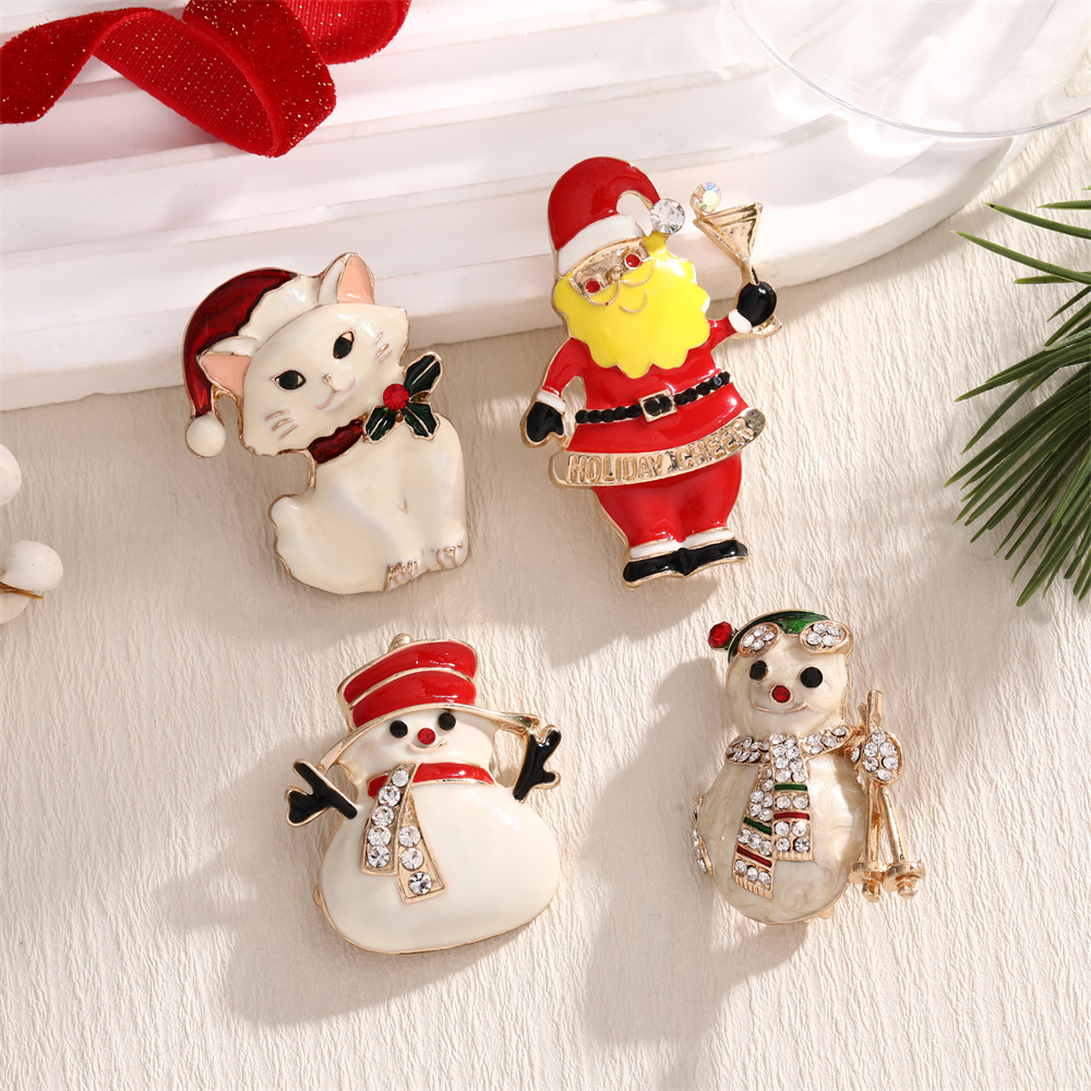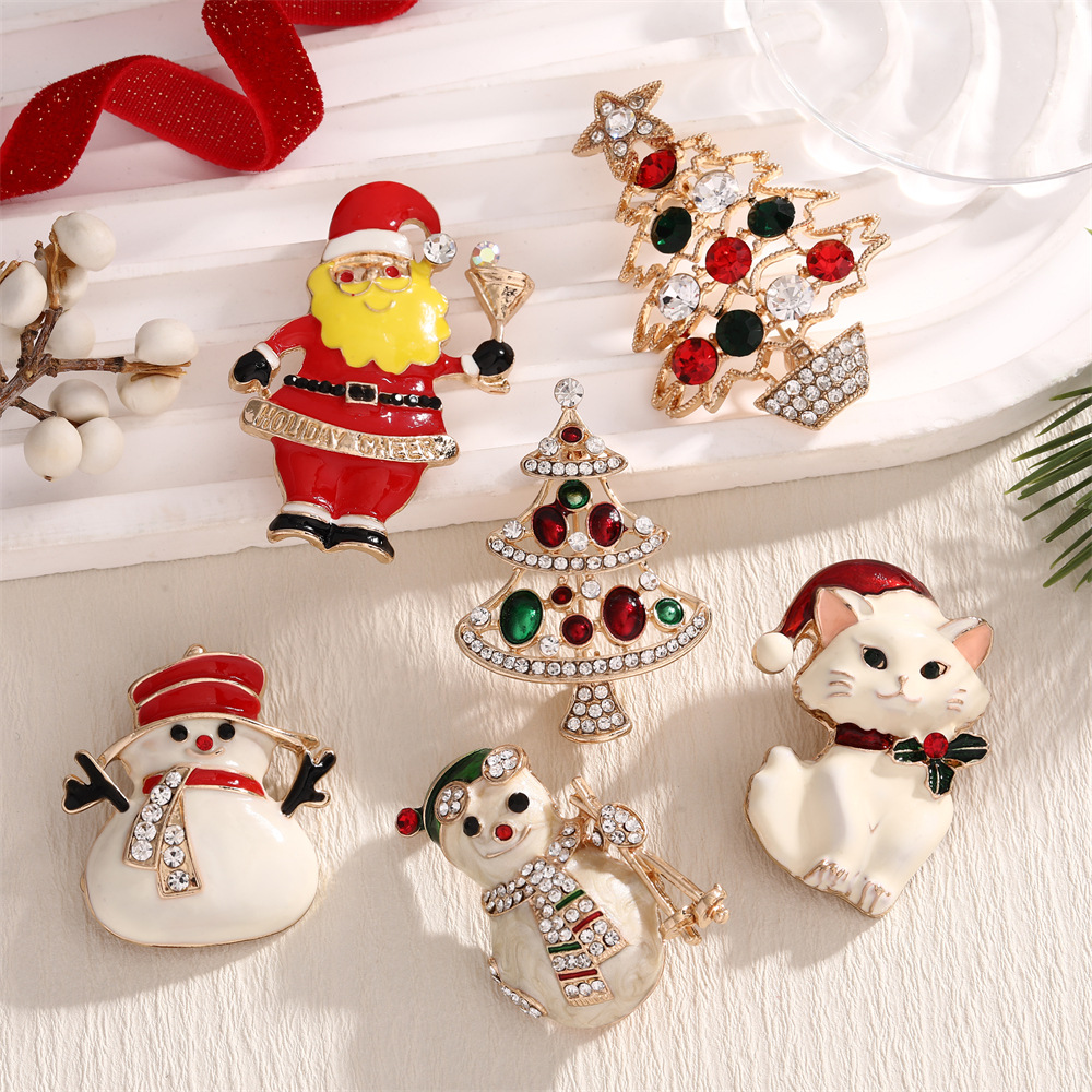 Spille di Natale, lega in zinco, placcato color oro, Design natalizio & smalto & con strass, nessuno, Venduto da PC