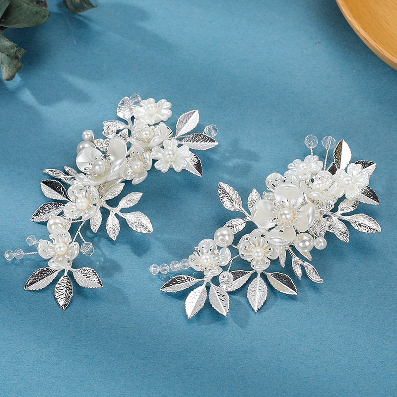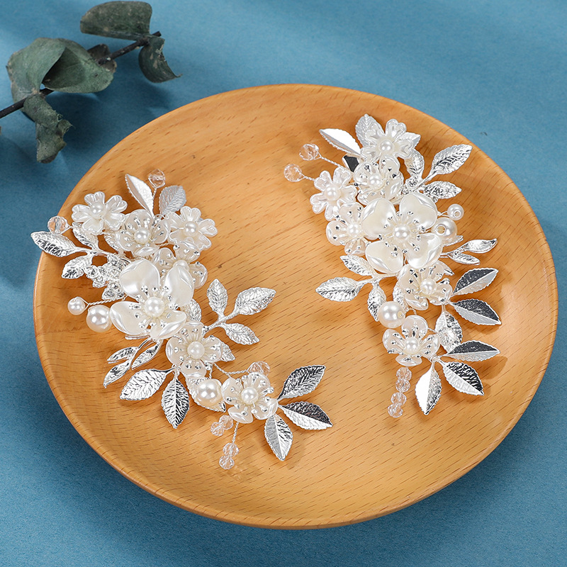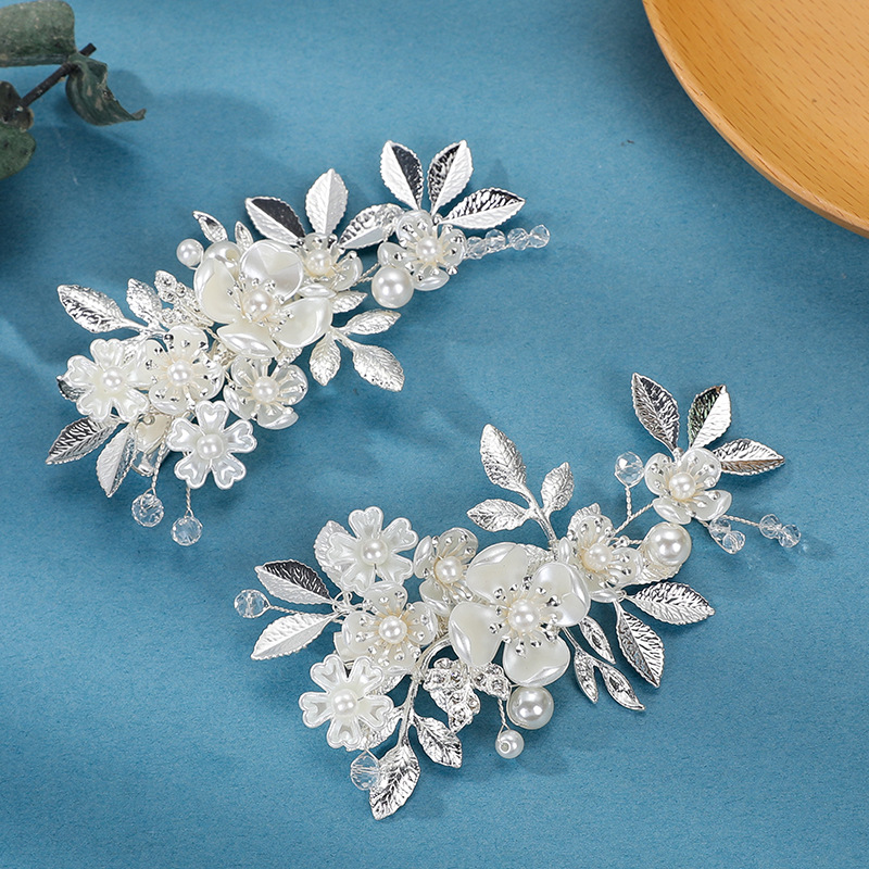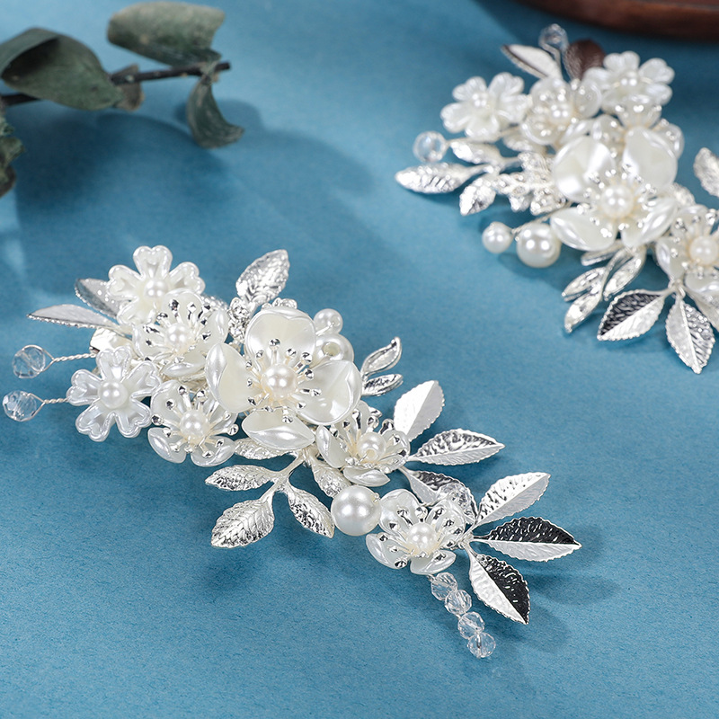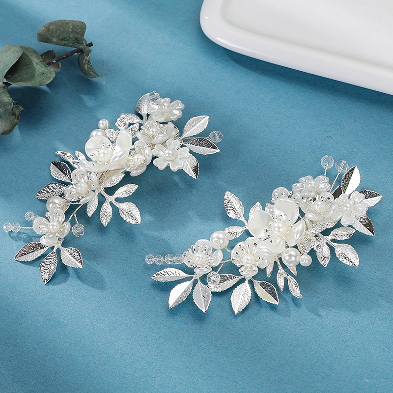 Spillette a becco, lega in zinco, with filo di ottone & argilla polimero & cristallo & perla in plastica, fatto a mano, gioielli di moda & per la donna, argento, 105x55x10mm, Venduto da PC