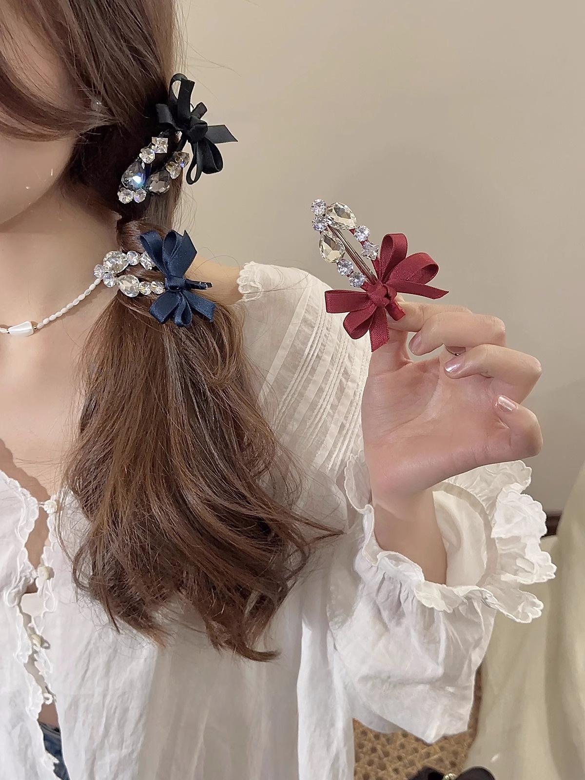 Spillette a becco, lega in zinco, with filo di ottone & argilla polimero & perla in plastica, fatto a mano, gioielli di moda & per la donna & con strass, dorato, 110x50mm, Venduto da PC