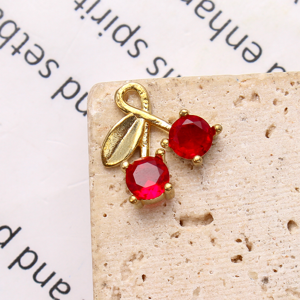 Strass ottone Ciondoli, Ciliegia, placcato, DIY & con strass, dorato, assenza di nichel,piombo&cadmio, 12.88x4.17x13.85mm, Diametro interno:Appross. 5.09mm, Venduto da PC