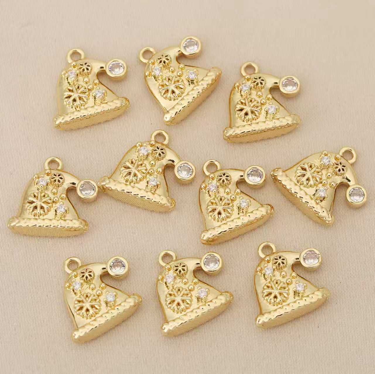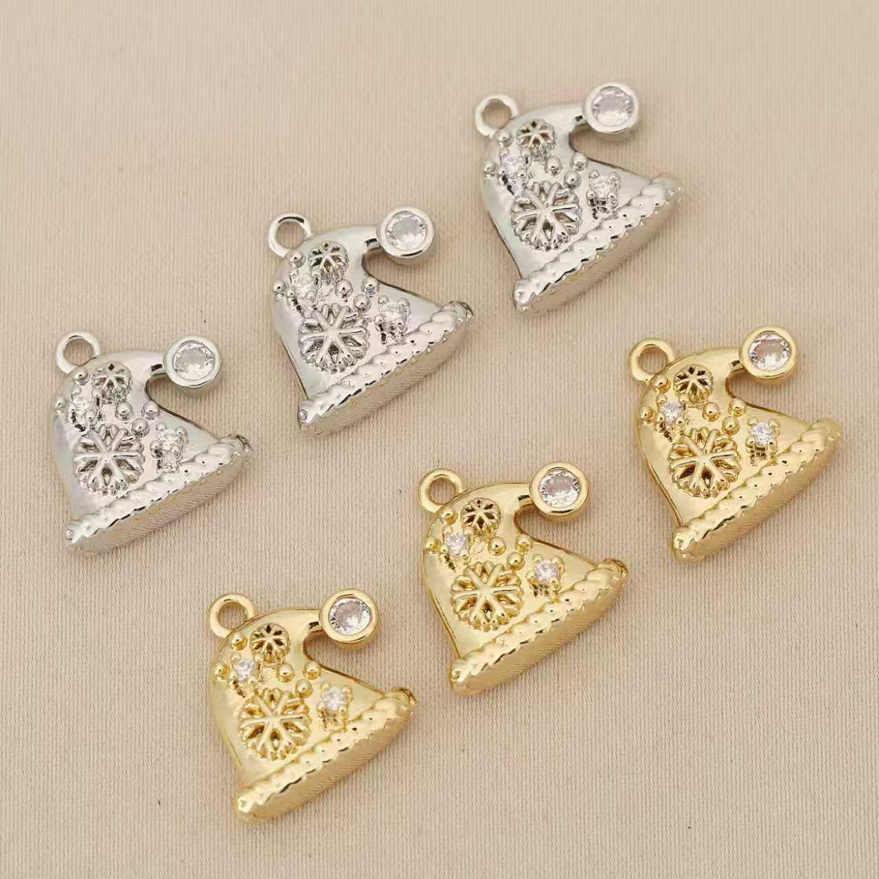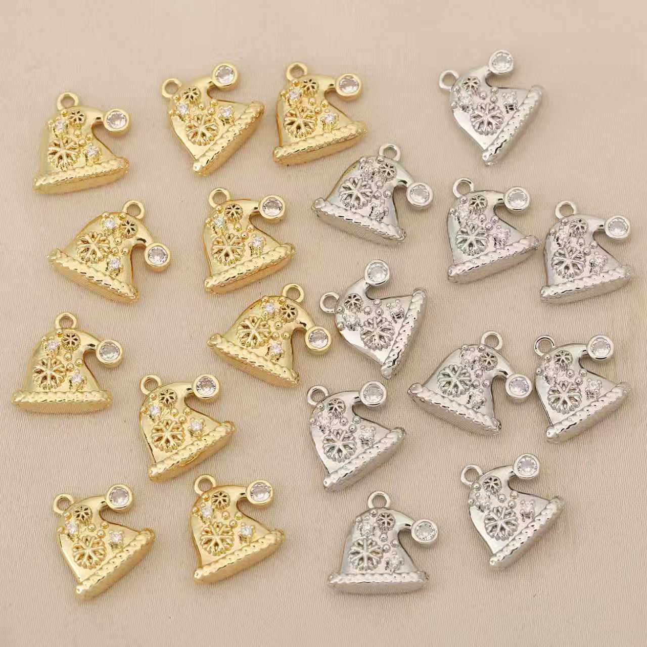 Strass ottone Ciondoli, Cappello Natalizio, placcato, DIY & con strass, nessuno, assenza di nichel,piombo&cadmio, 10PC/borsa, Venduto da borsa