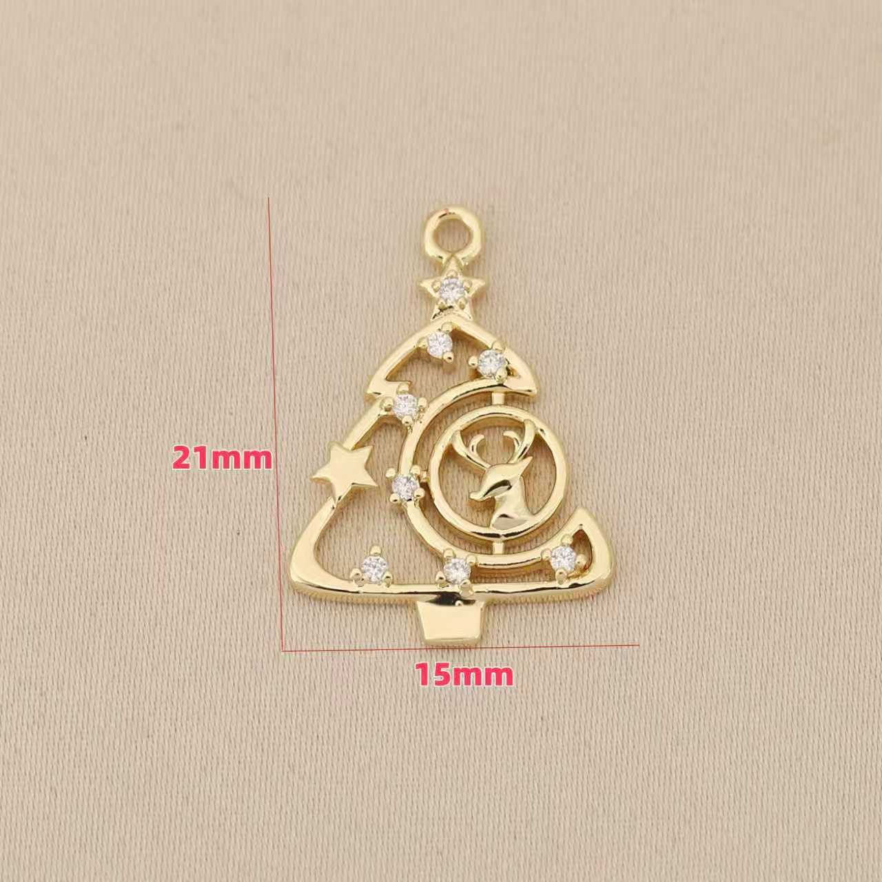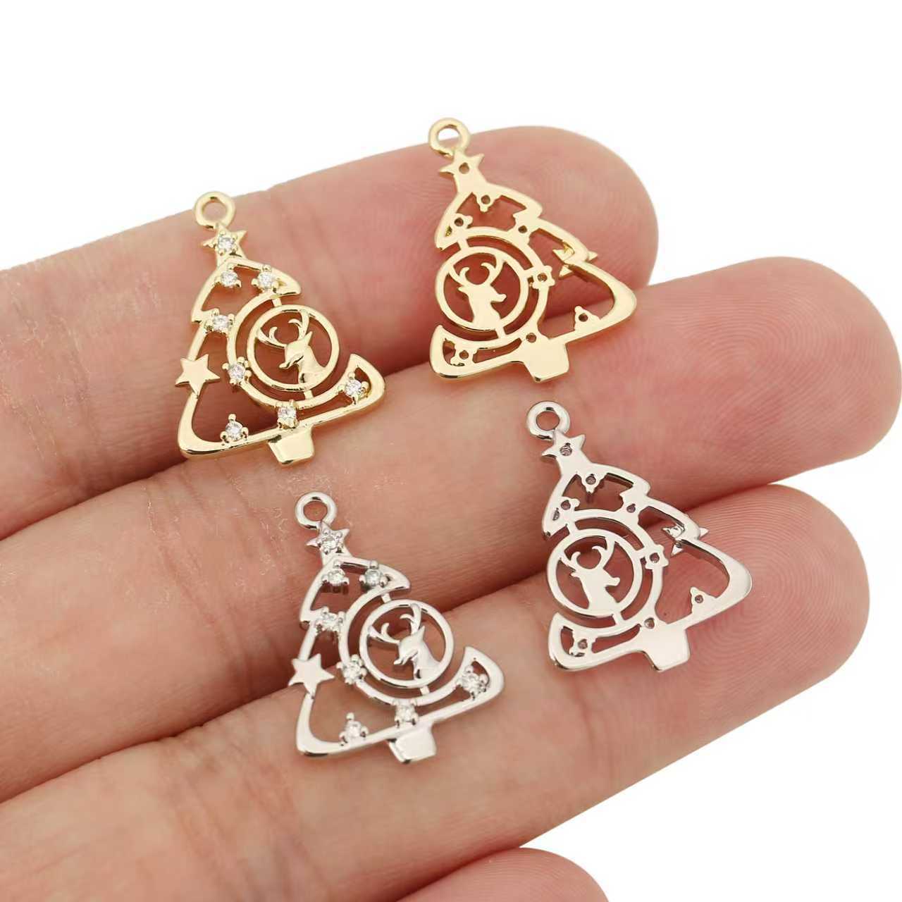 Strass ottone Ciondoli, Albero di Natale, placcato, DIY & con strass & cavo, nessuno, assenza di nichel,piombo&cadmio, 10PC/borsa, Venduto da borsa