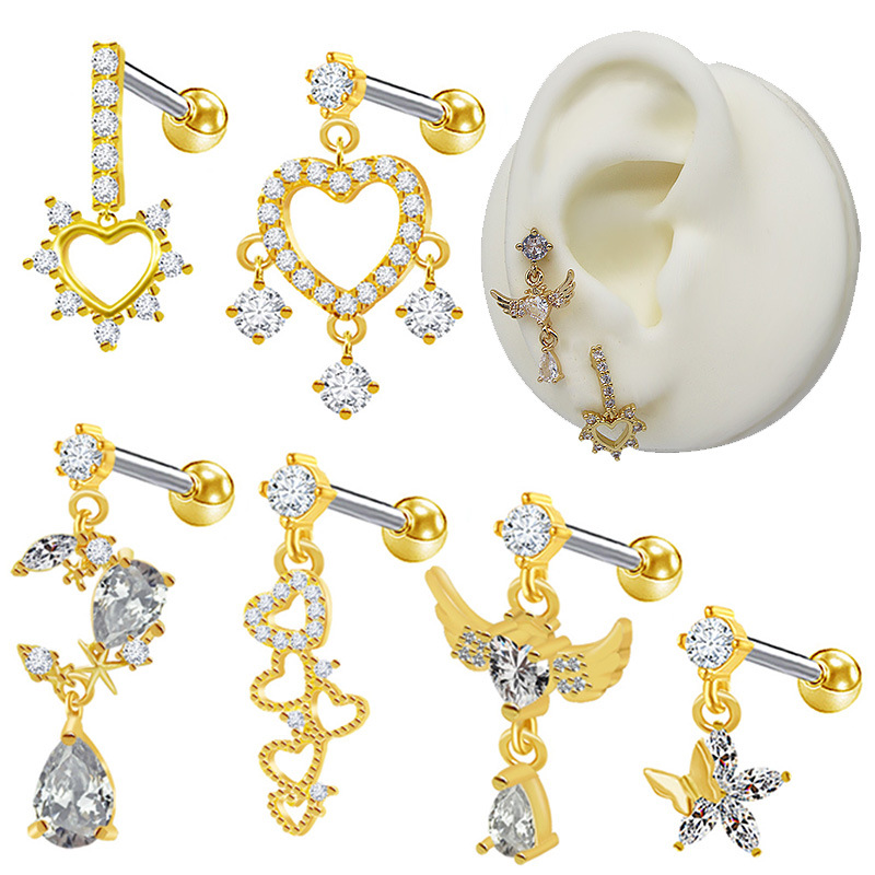 Titantium acciaio orecchino piercing, placcato color oro, unisex & stili diversi per la scelta & con strass, Venduto da PC