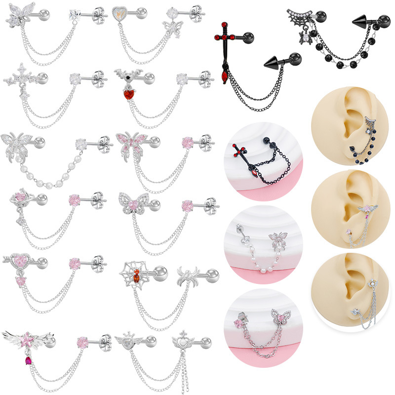 Titantium acciaio orecchino piercing, placcato, unisex & stili diversi per la scelta & con strass, Venduto da PC