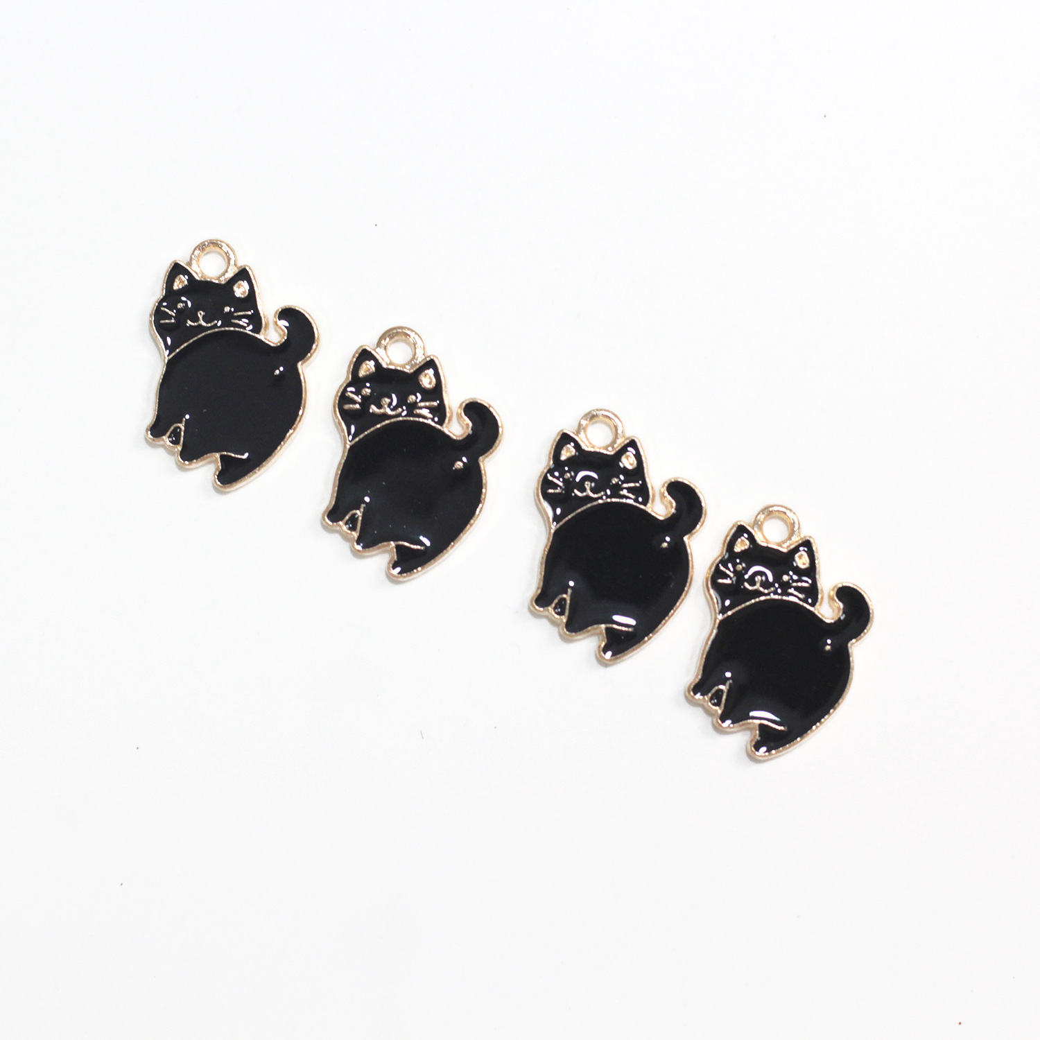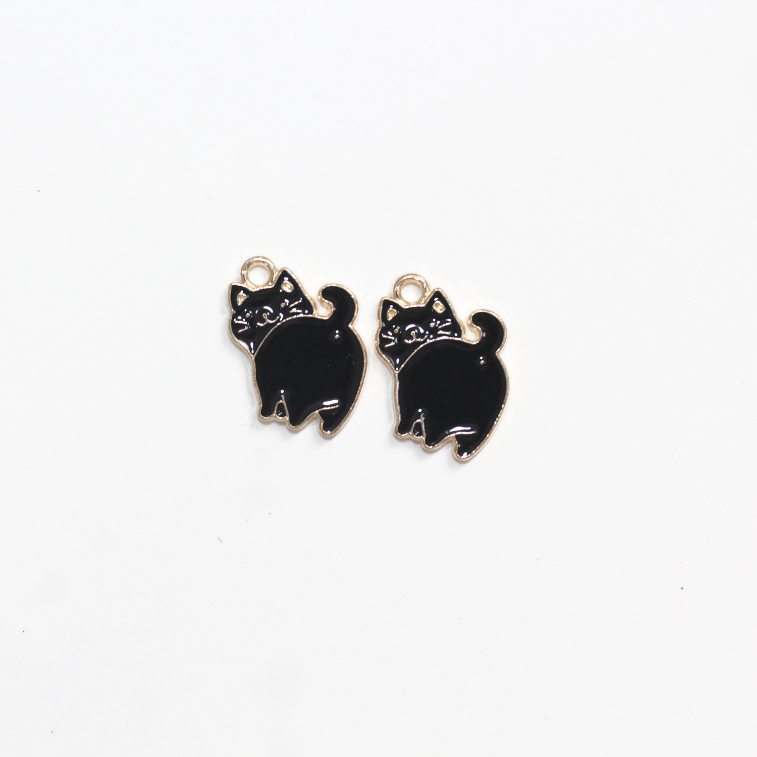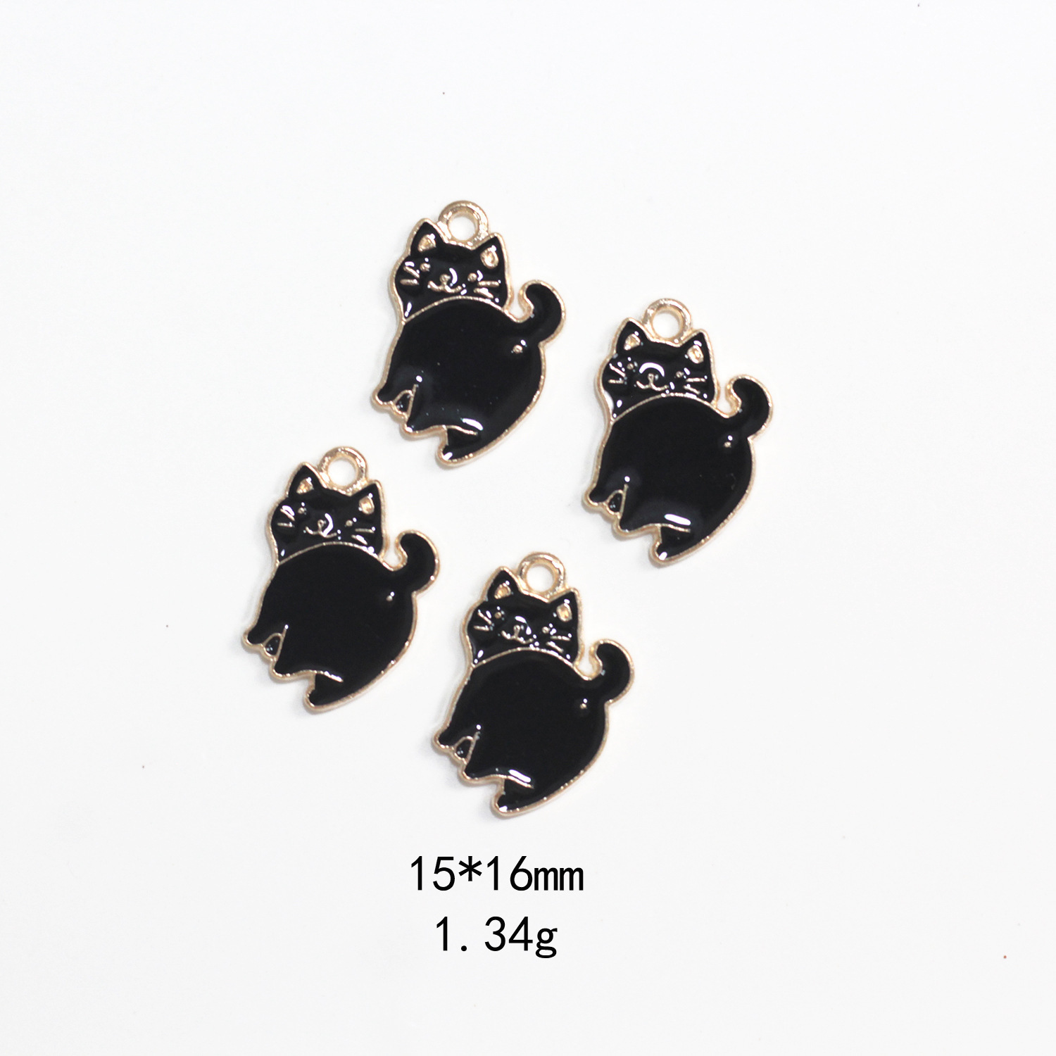 Ciondoli di smalto di lega di zinco, lega in zinco, Gatto, placcato color oro, DIY, nero, 15x16mm, 10PC/borsa, Venduto da borsa