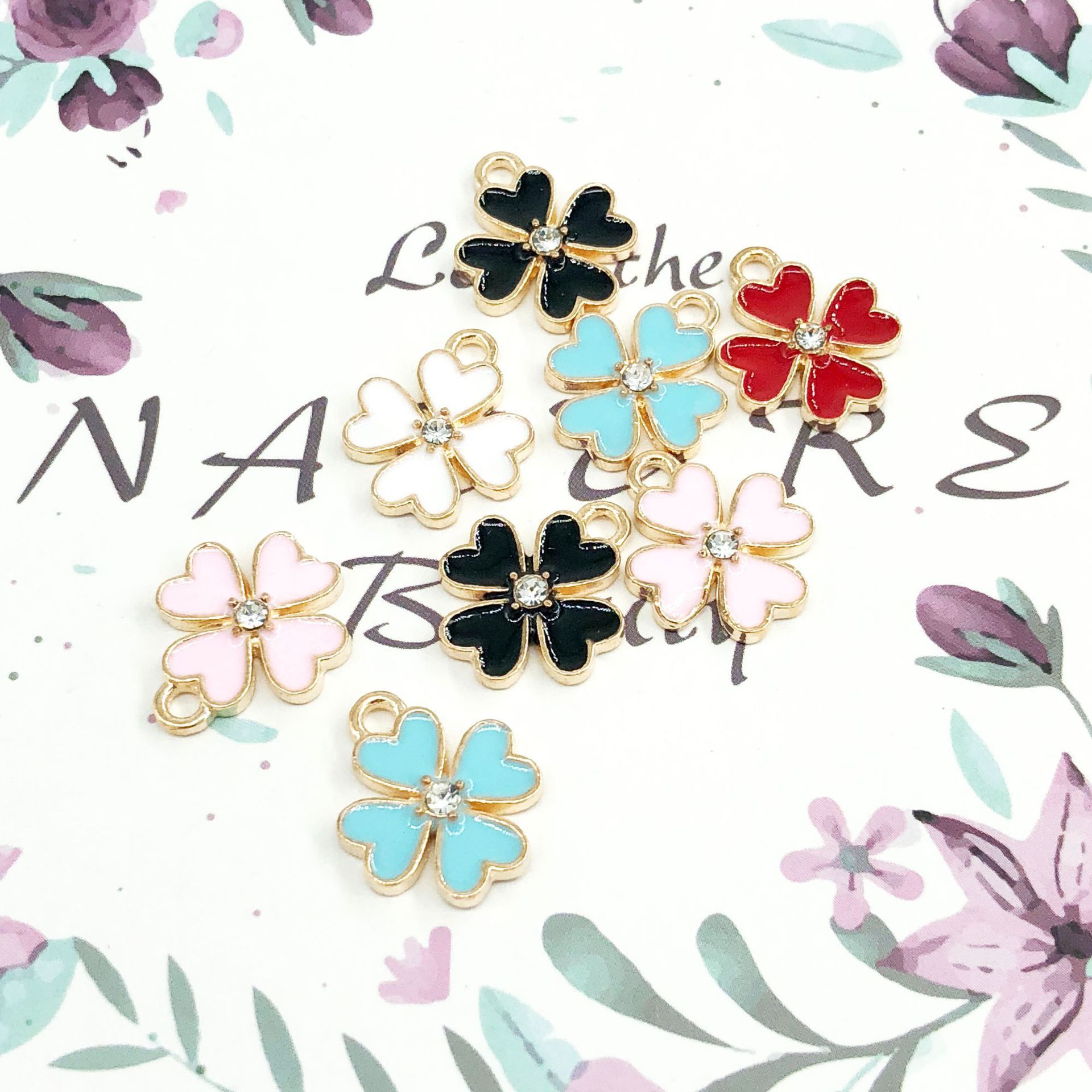 Ciondoli di smalto di lega di zinco, lega in zinco, Fiore, placcato color oro, DIY & con strass, nessuno, 100PC/borsa, Venduto da borsa