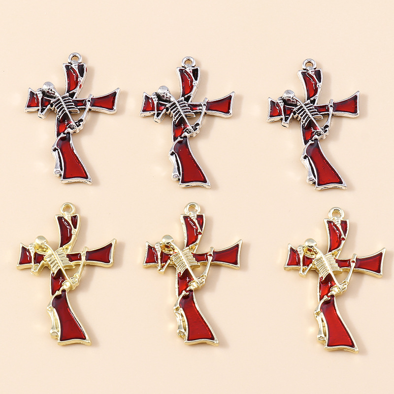Ciondoli di smalto di lega di zinco, lega in zinco, Croce, placcato, DIY, nessuno, 4PC/borsa, Venduto da borsa