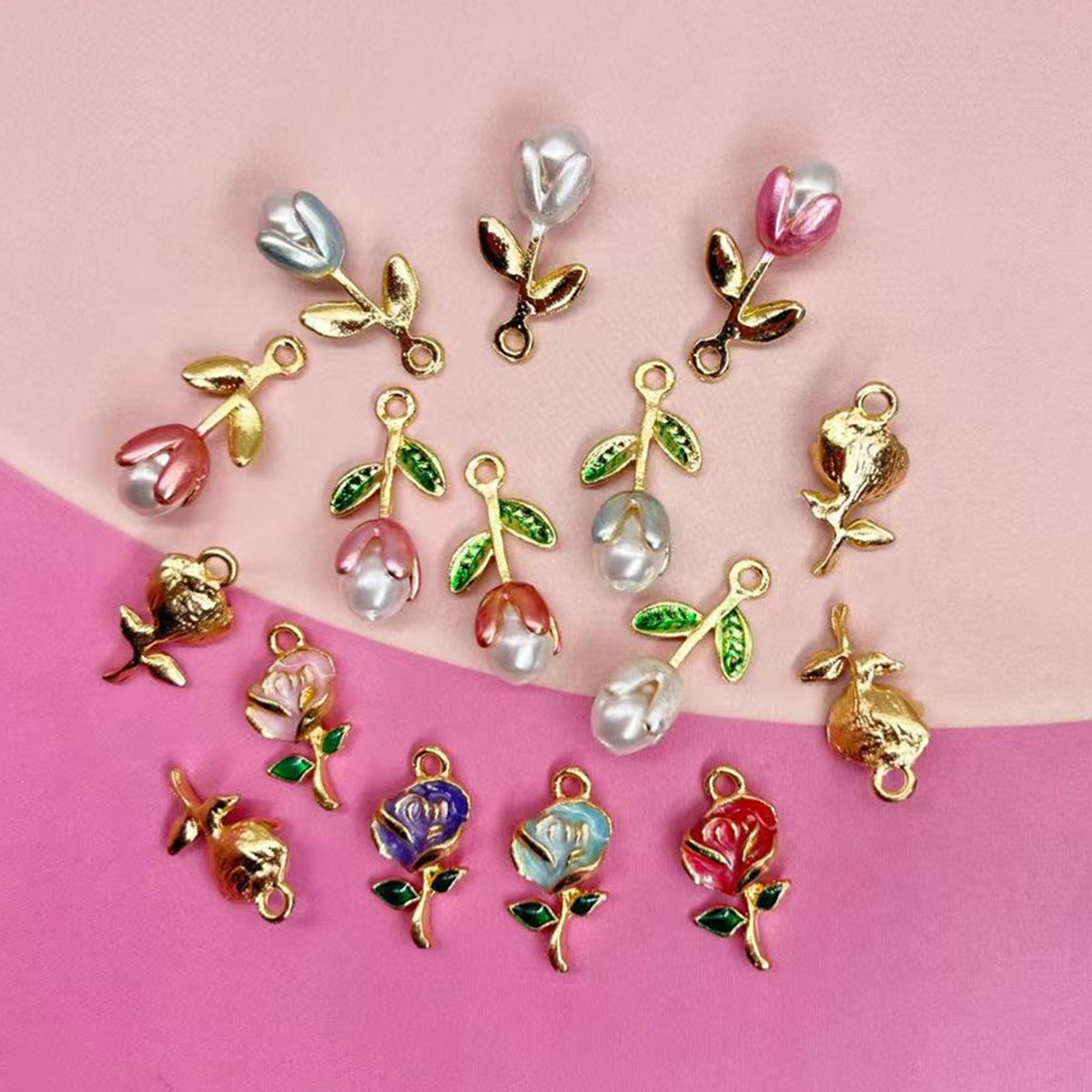 Ciondoli di smalto di lega di zinco, lega in zinco, with perla in plastica, Fiore, placcato color oro, DIY & formato differente per scelta, nessuno, assenza di nichel,piombo&cadmio, Appross. 100PC/borsa, Venduto da borsa