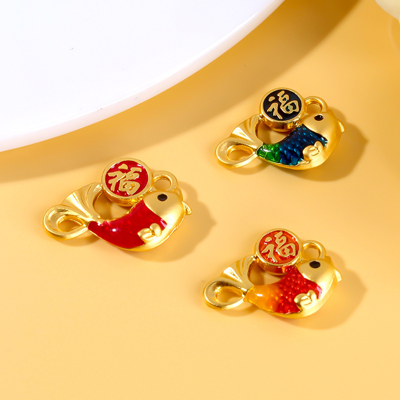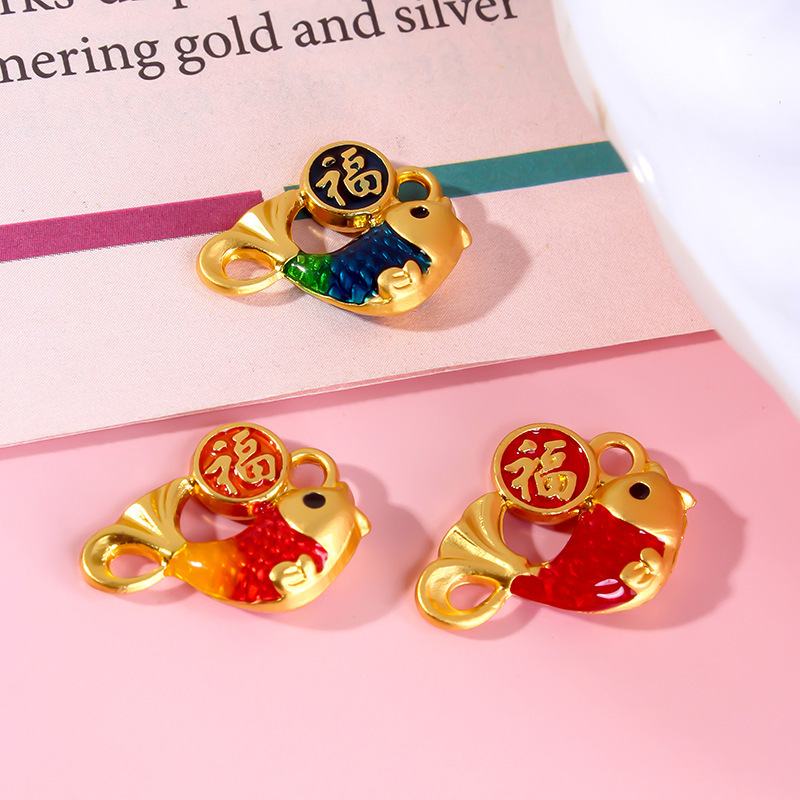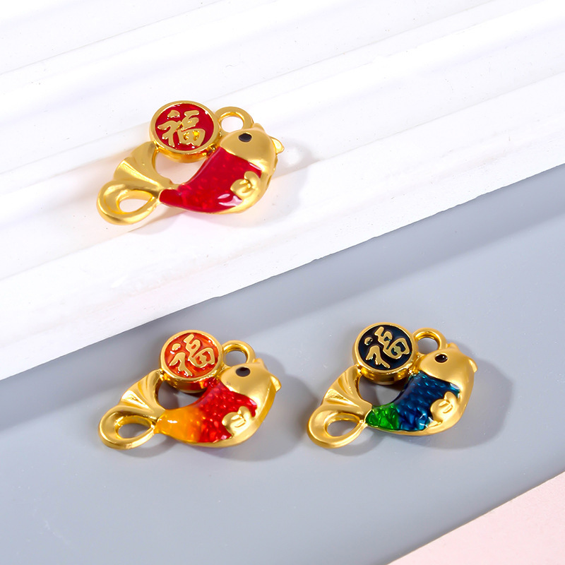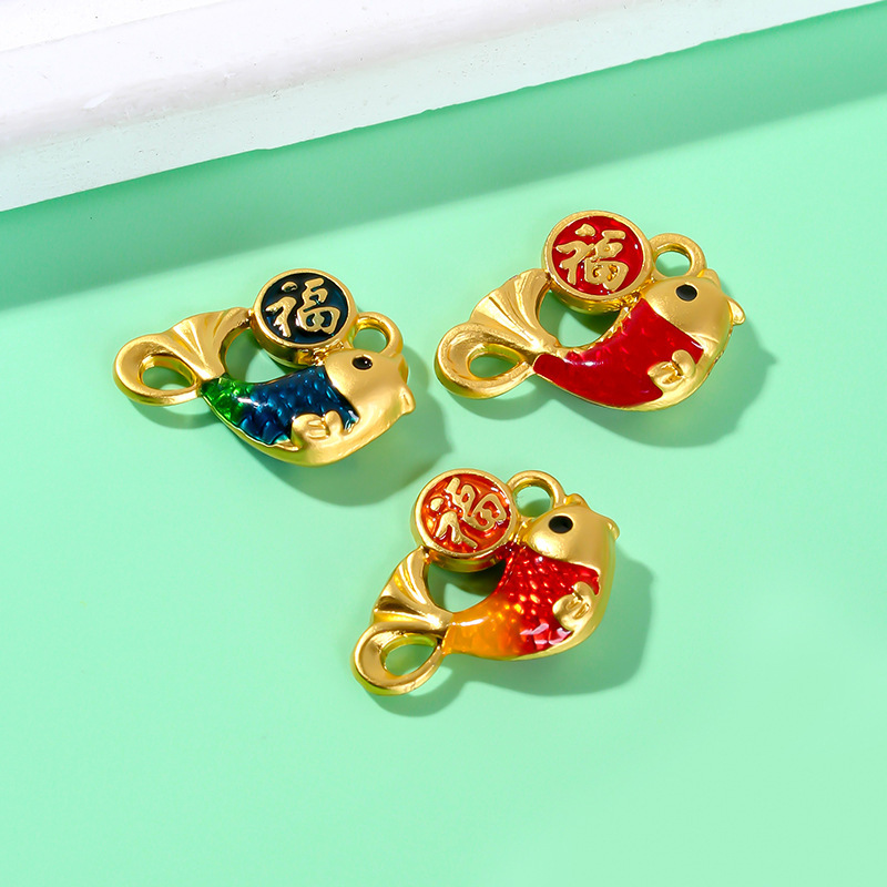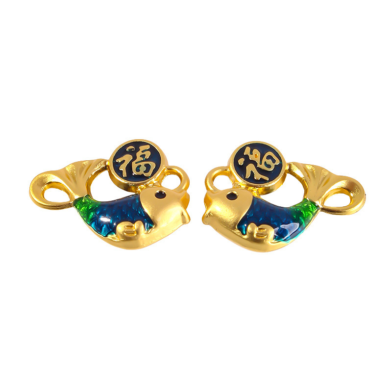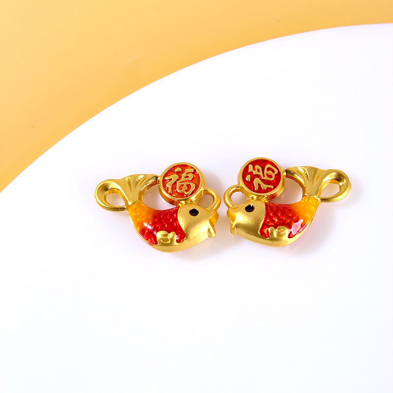 Ciondoli di smalto di lega di zinco, lega in zinco, Pesce, placcato color oro, DIY, nessuno, assenza di nichel,piombo&cadmio, 17x12mm, Venduto da PC