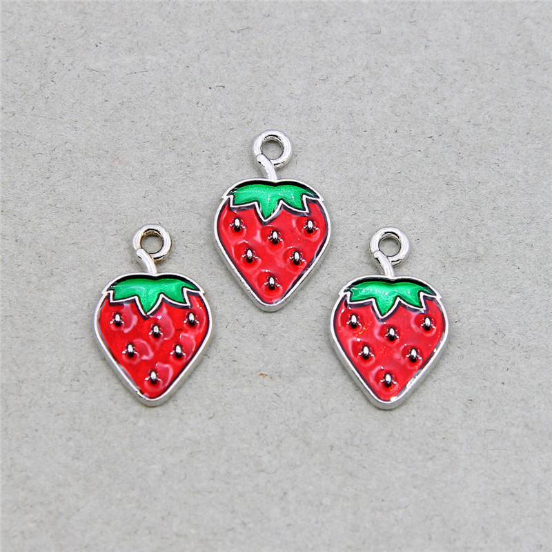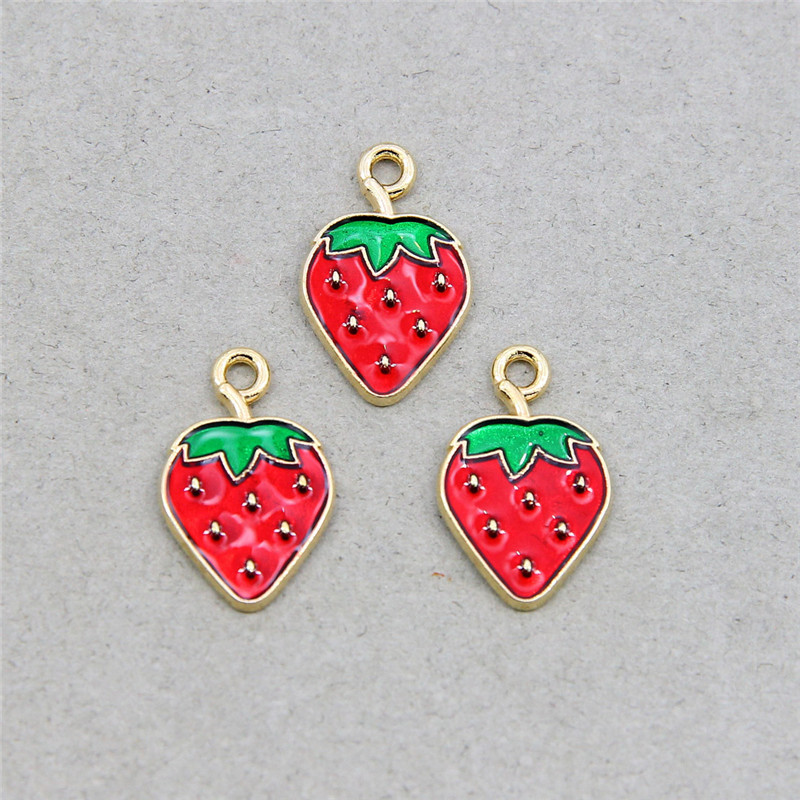 Ciondoli di smalto di lega di zinco, lega in zinco, Fragola, placcato, DIY, nessuno, assenza di nichel,piombo&cadmio, 20x13x1.60mm, 100PC/borsa, Venduto da borsa