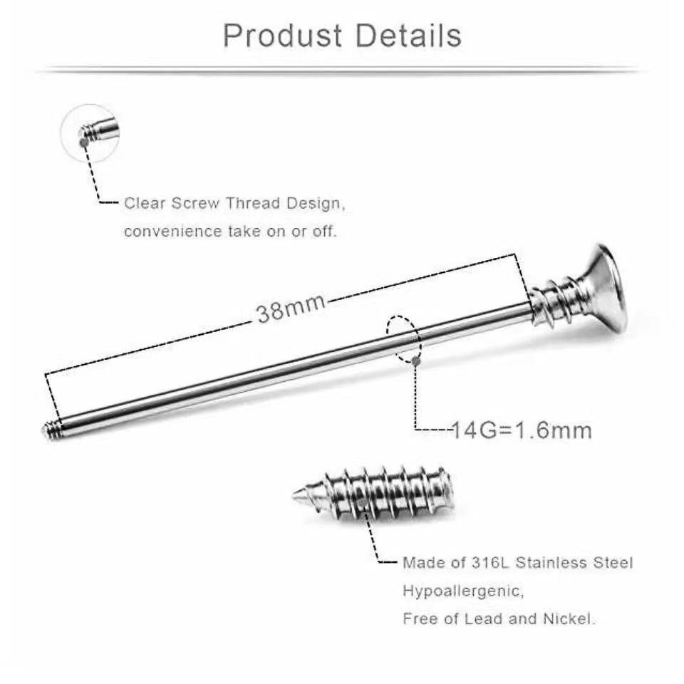 316L acciaio inox orecchino piercing, unisex & stili diversi per la scelta & con strass, colore originale, 38mm, Venduto da PC
