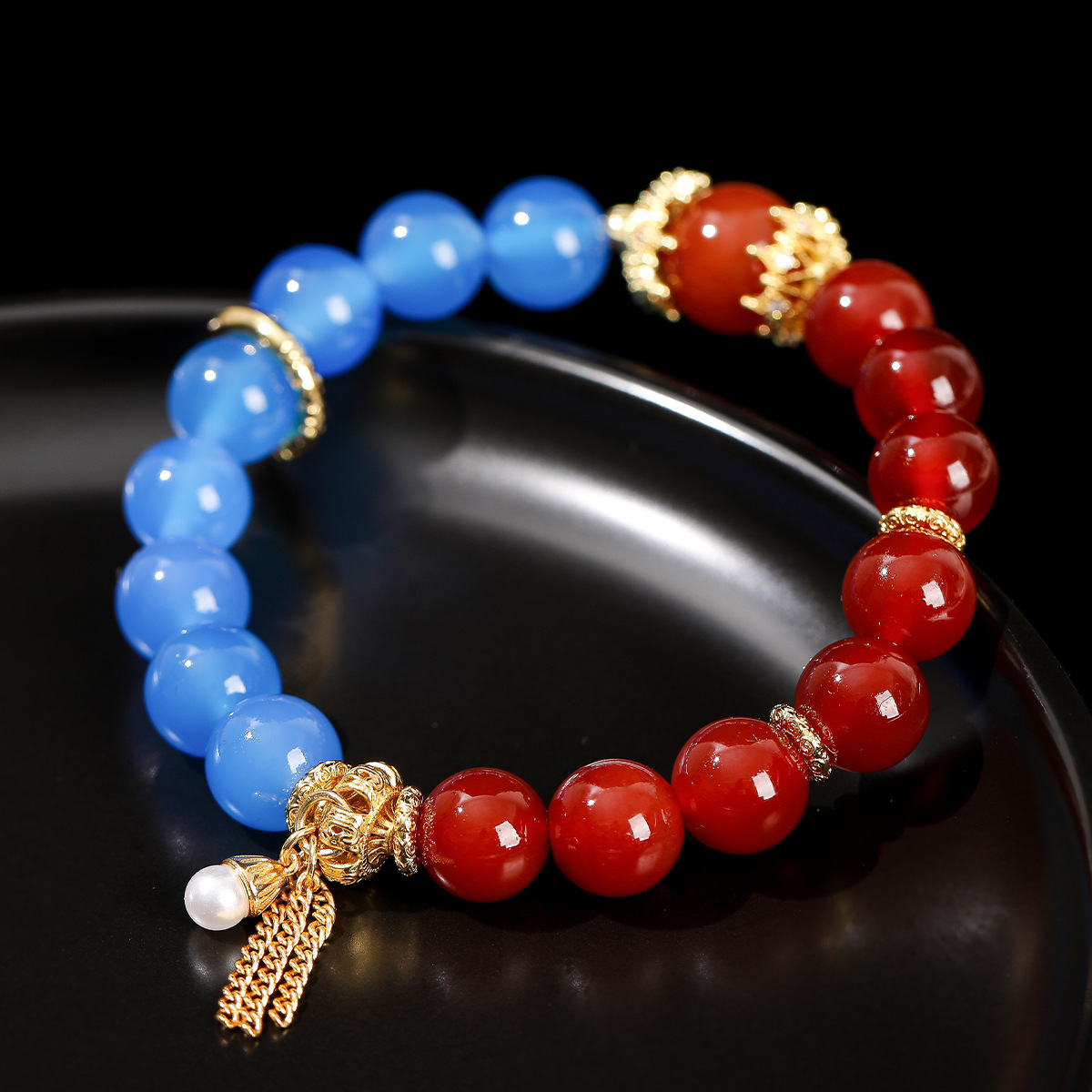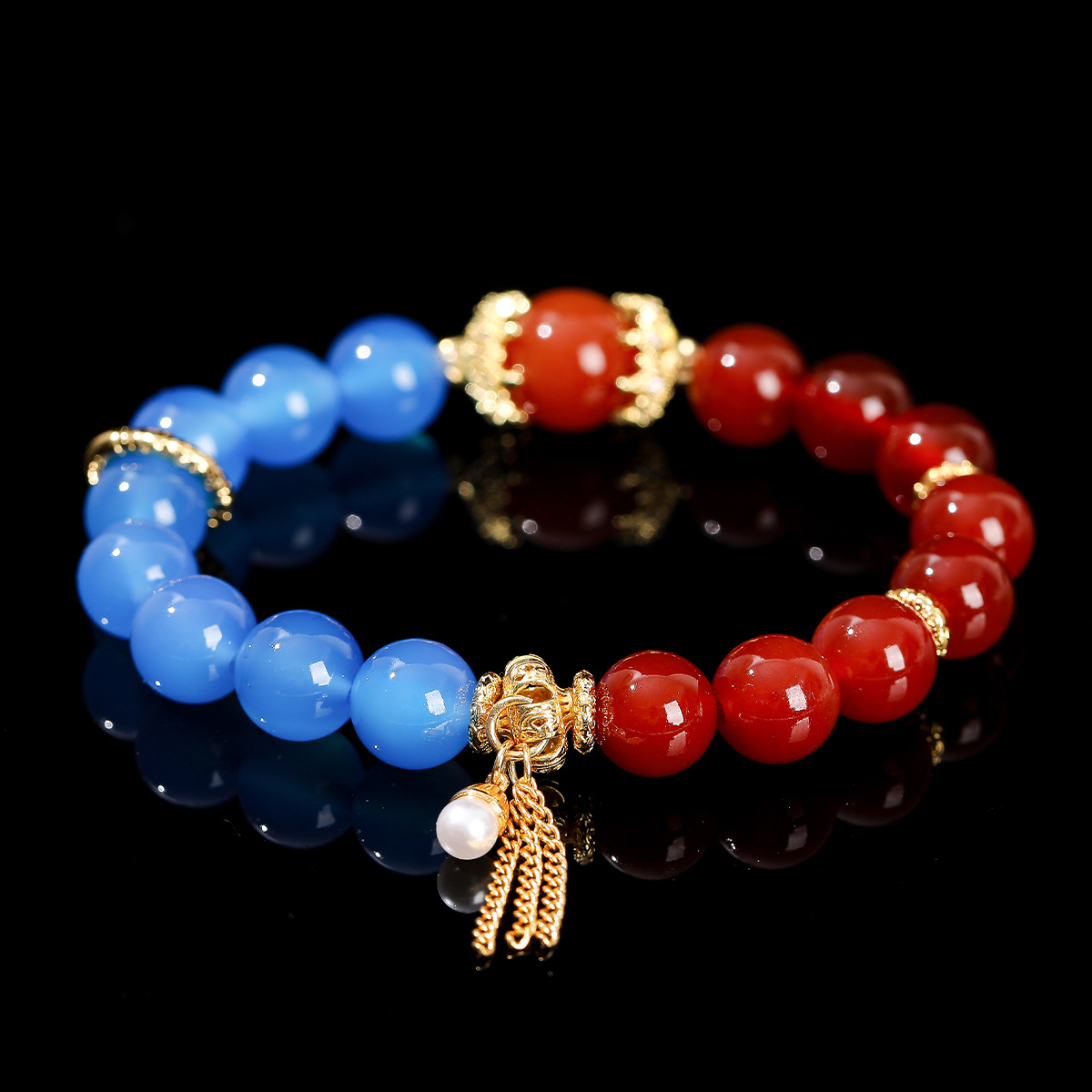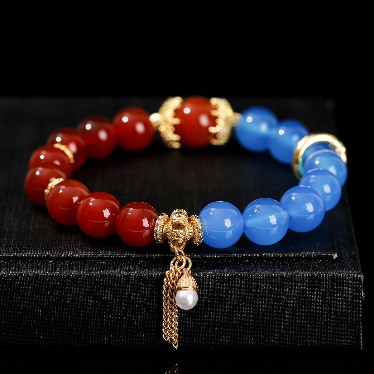 agata rossa braccialetto, with agata blu & perla in plastica & ottone, Cerchio, fatto a mano, naturale & unisex, beads length 10mm,12mm, Lunghezza Appross. 6-7 pollice, Venduto da PC