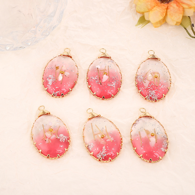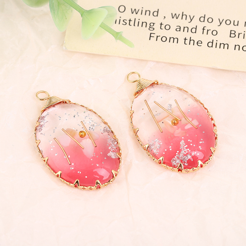 lega in zinco pendente, with Fiori secchi & resina, ellisse, placcato, DIY & adesivo epoxi, colori misti, 33.50x20mm, Venduto da PC