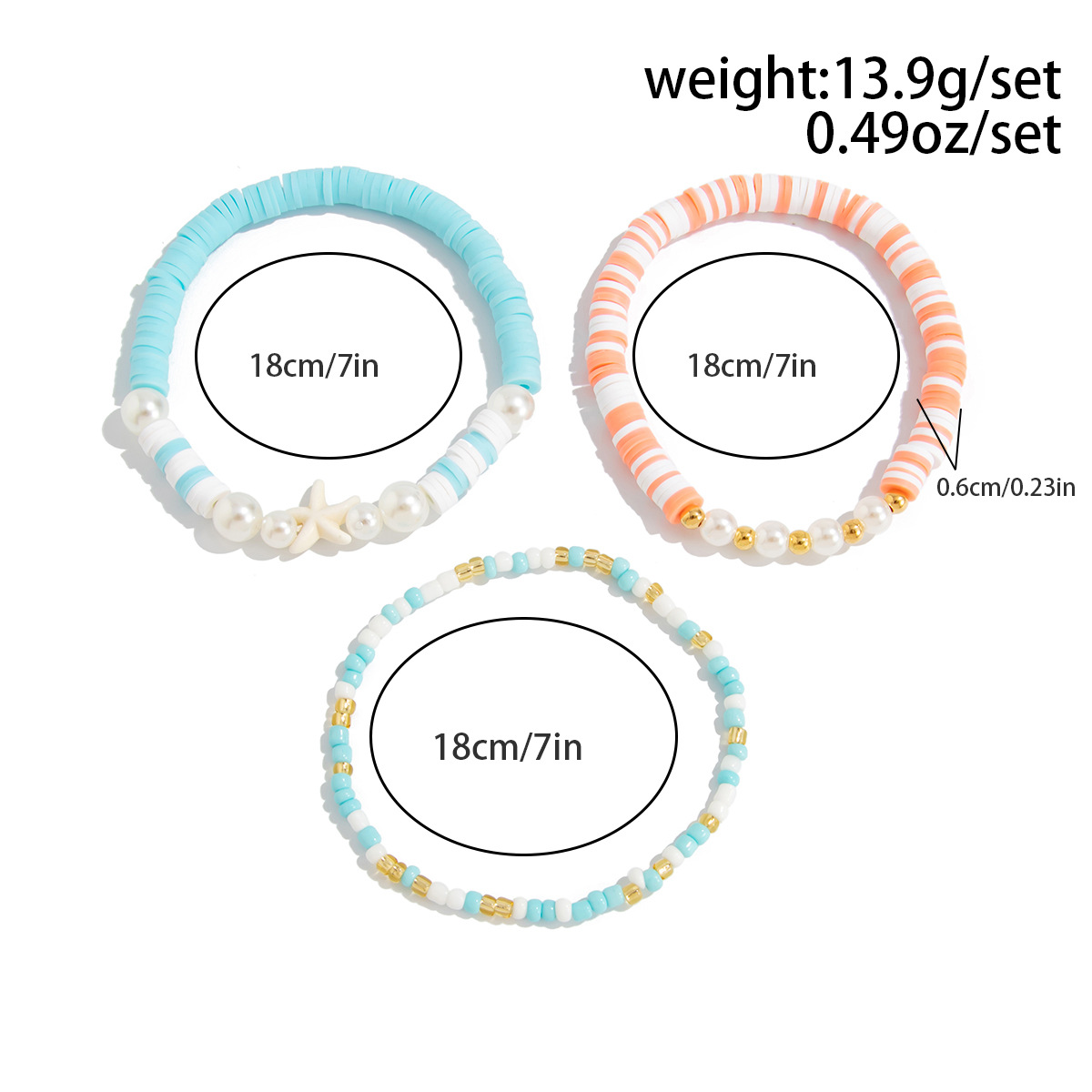 lega in zinco Bracciale Set, with Seedbead & filo elastico & plastica rivestito in rame & perla in plastica, fatto a mano, tre pezzi & stili diversi per la scelta & per la donna, colori misti, Venduto da set