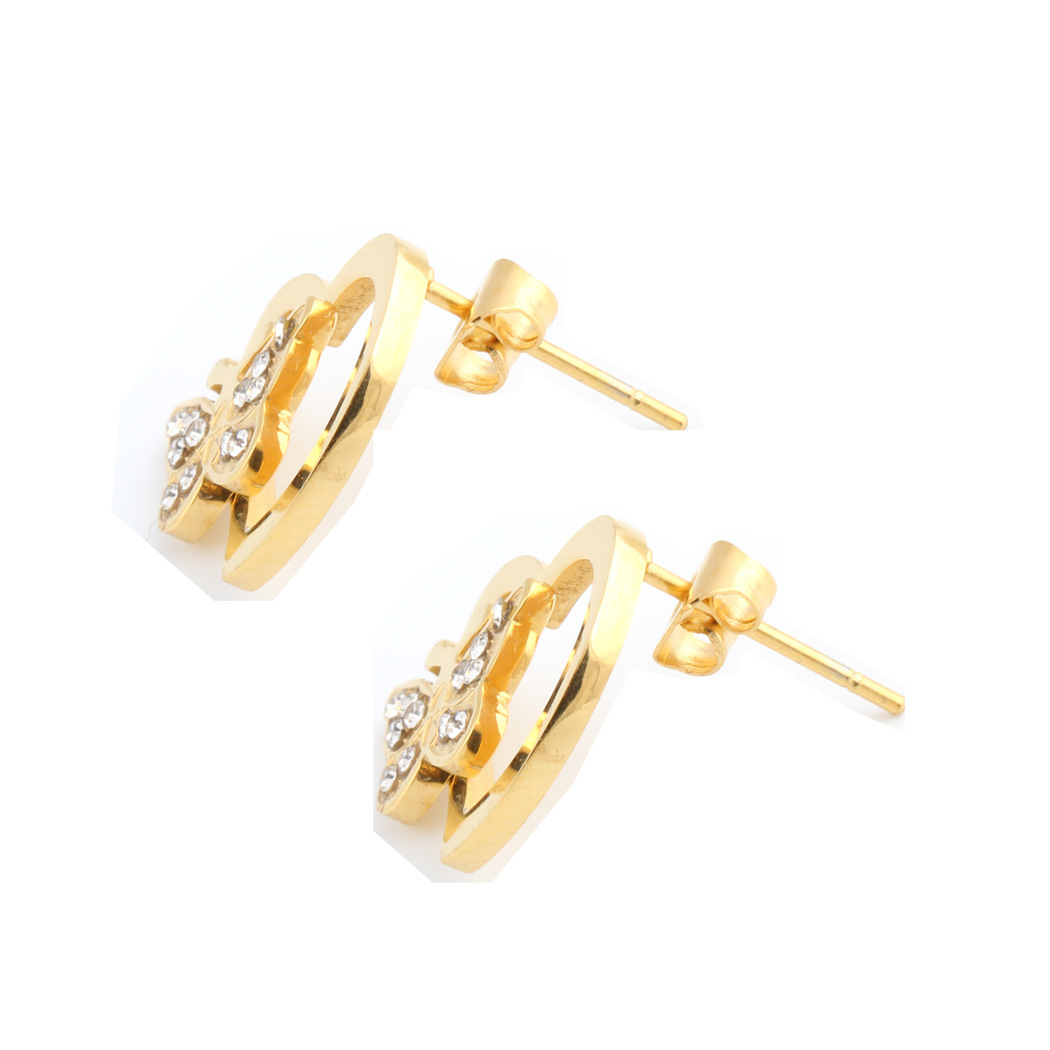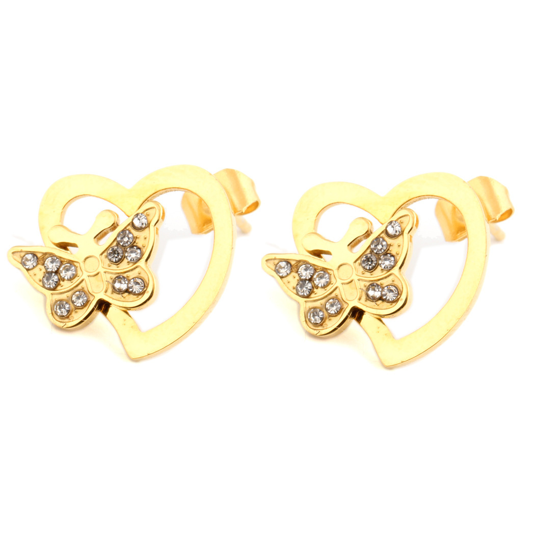 lega in zinco orecchini a borchia, Farfalla, placcato color oro, per la donna & con strass & cavo, 10mm, Venduto da coppia