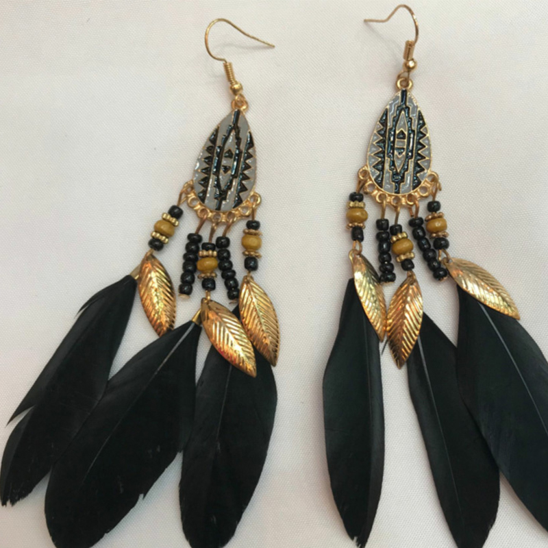 lega in zinco oracchino a pennacchio, with Seedbead & piuma, placcato, Stile bohémien & per la donna & smalto, nessuno, 160x60x2mm, Venduto da coppia