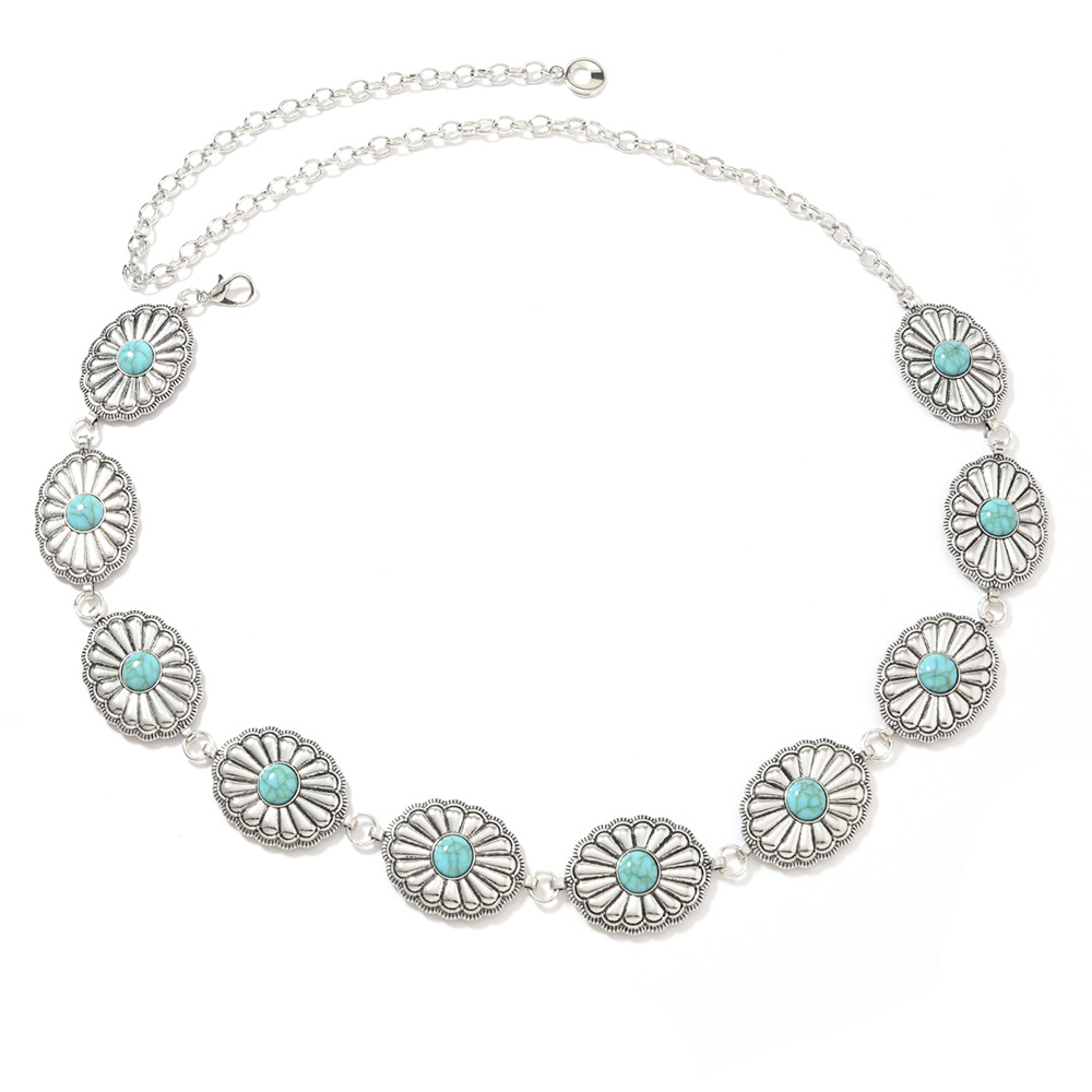 lega in zinco catena da vita, with turchese & ferro, placcato, Vintage & per la donna, argento, Lunghezza Appross. 110 cm, Venduto da PC