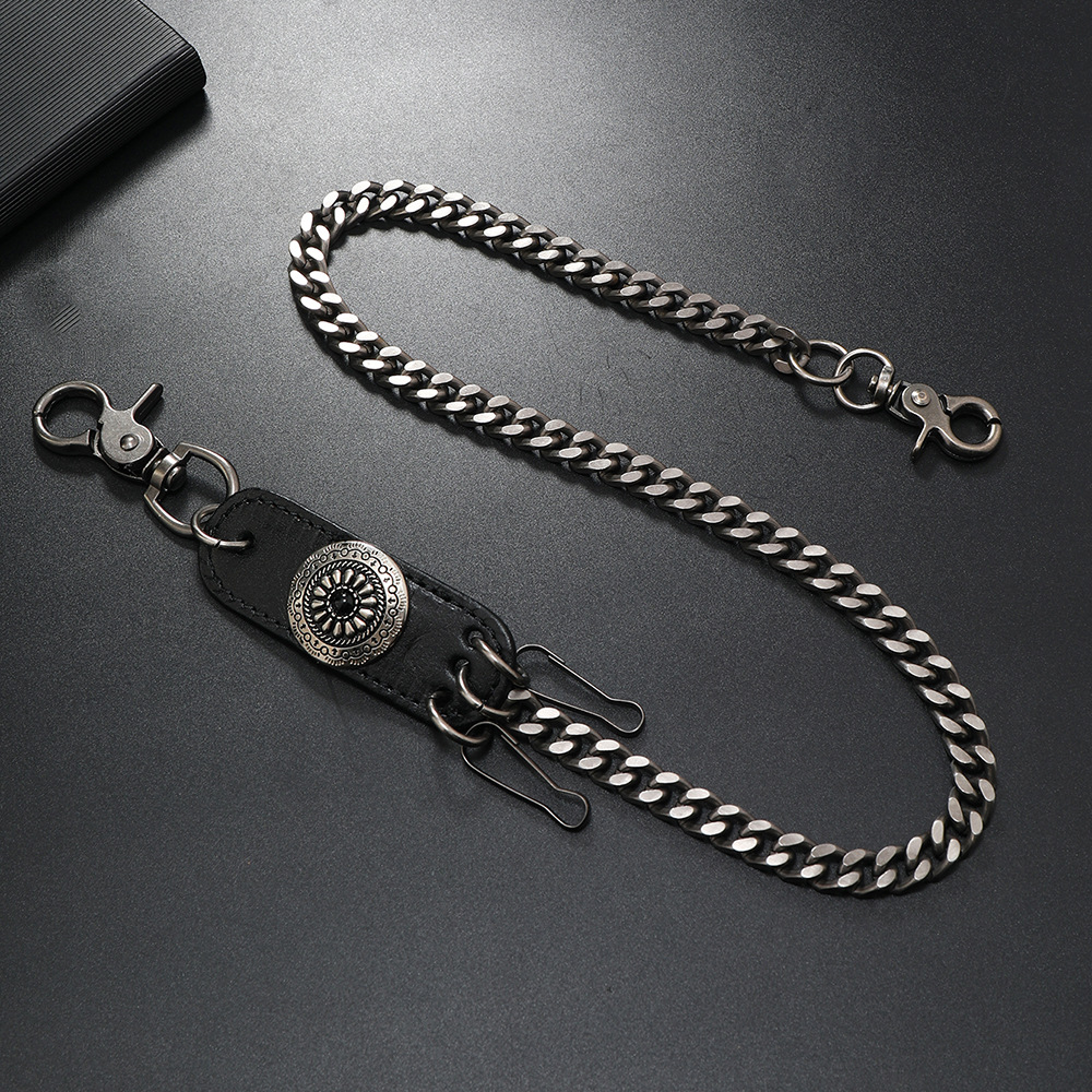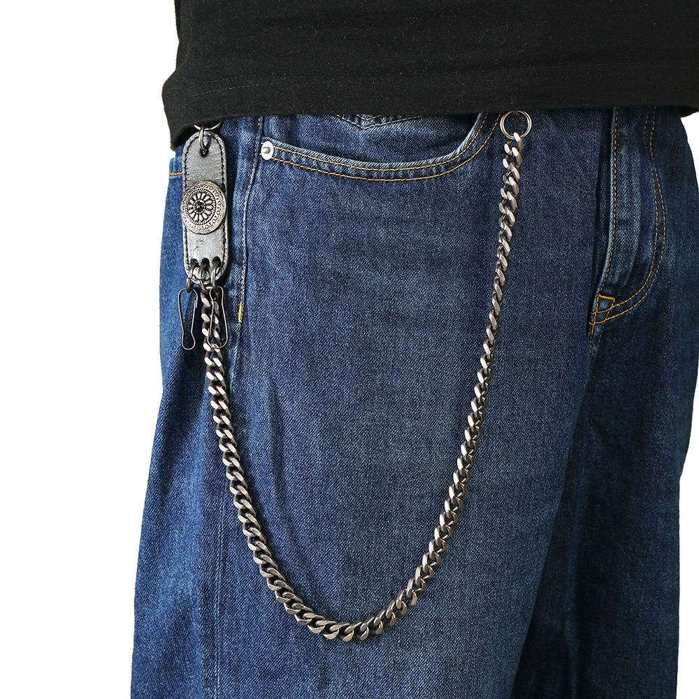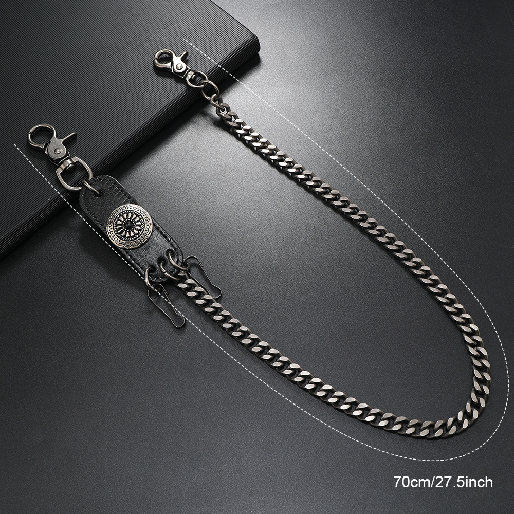 lega in zinco catena da vita, with corda in pelle di vitello & ferro, placcato, stile punk & per l'uomo, nero, Lunghezza Appross. 70 cm, Venduto da PC