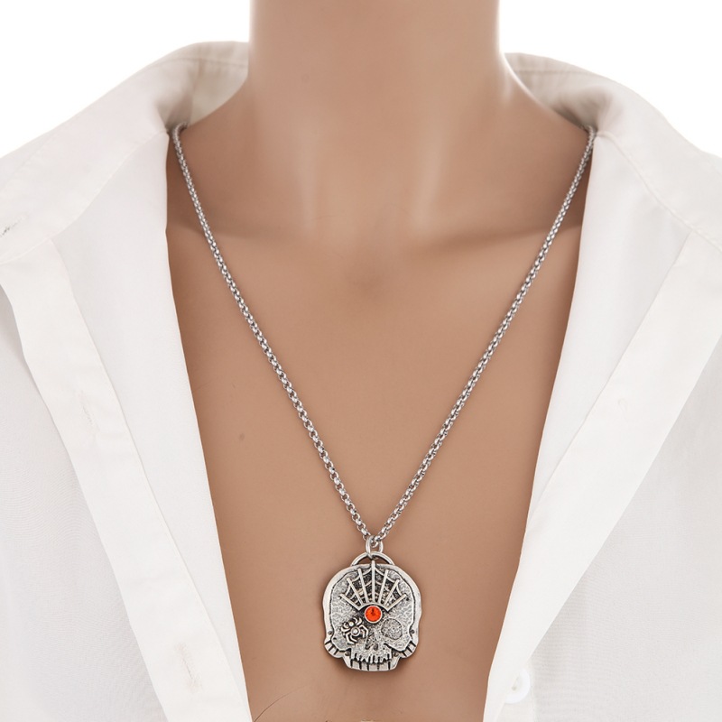 lega in zinco collana, with resina, Teschio, placcato, Design di Halloween & stili diversi per la scelta & per l'uomo, Lunghezza Appross. 26.8 pollice, Venduto da PC