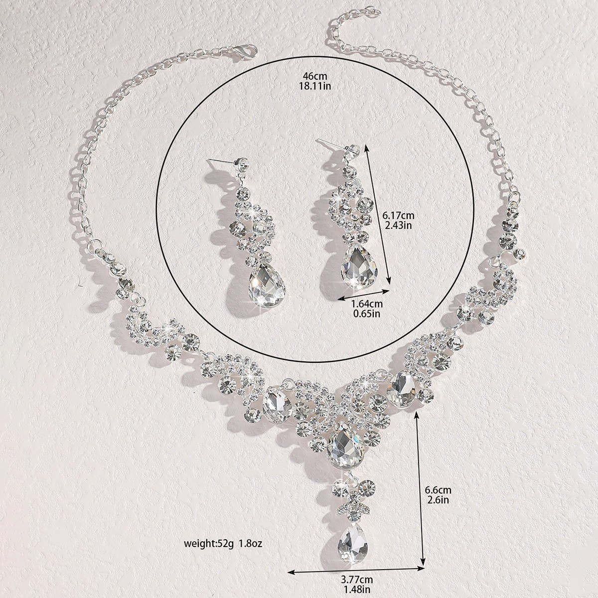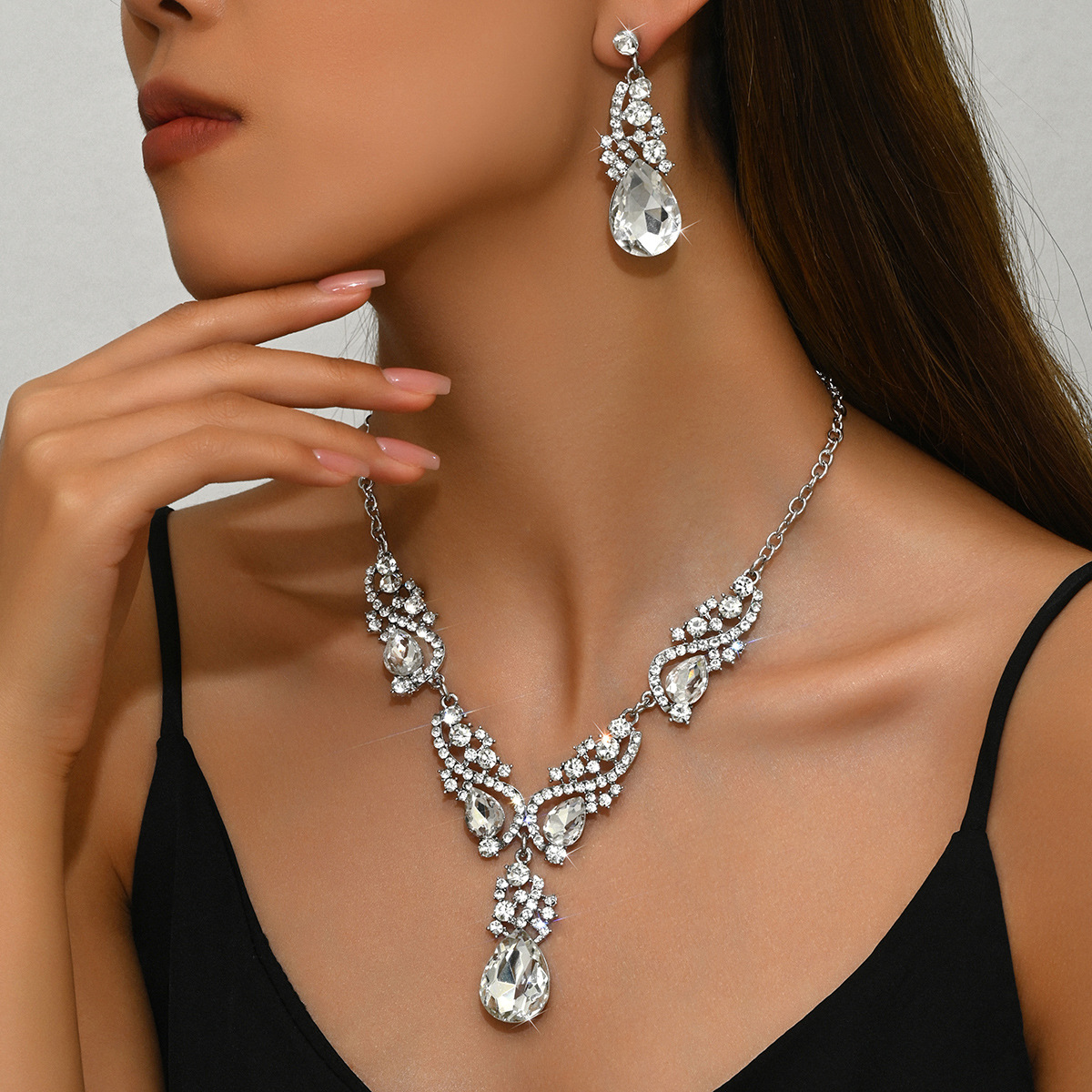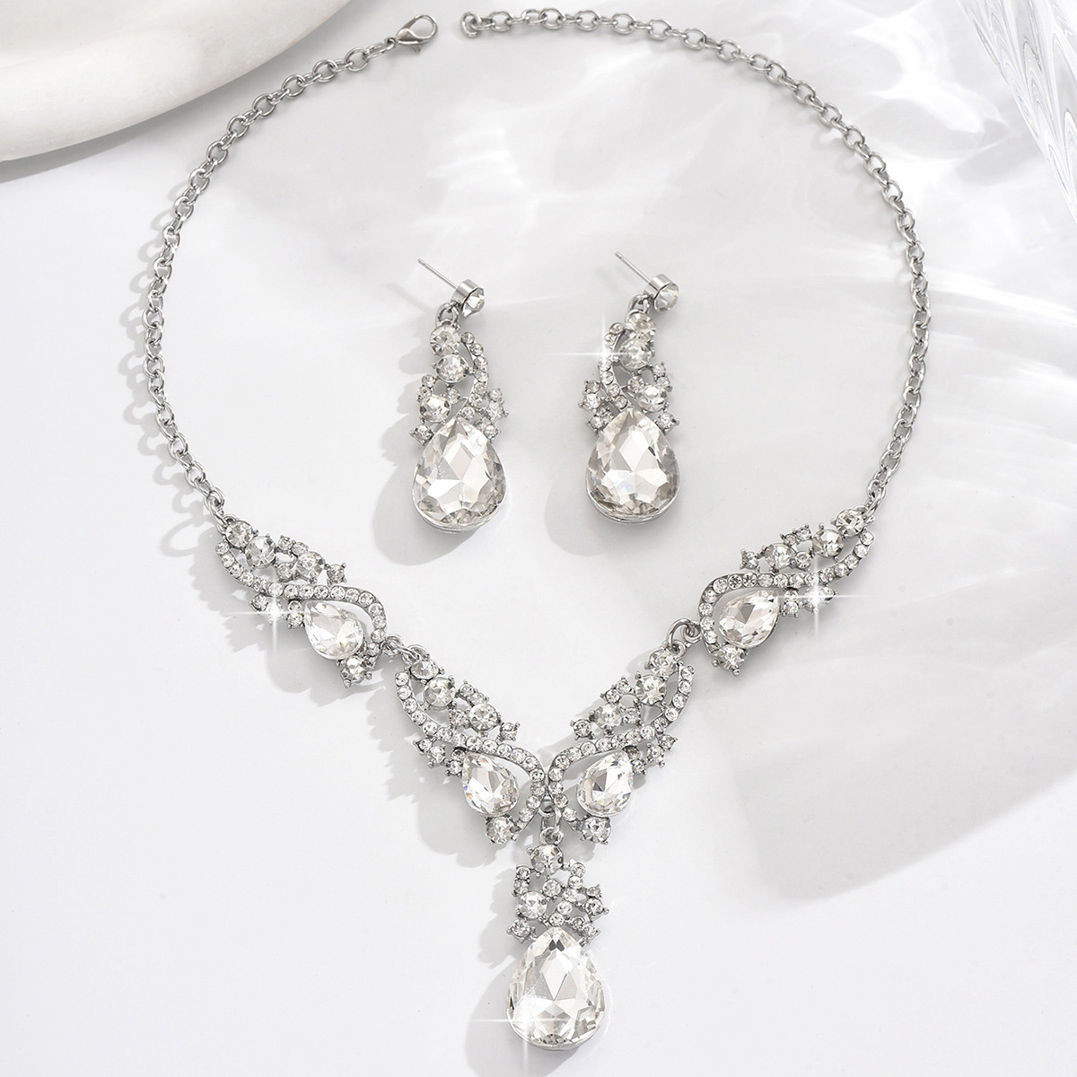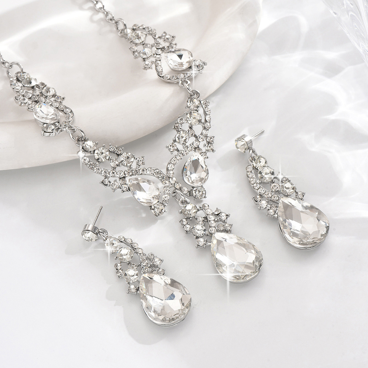 lega in zinco set di gioielli fashion, orecchino & Collana, Lacrima, placcato color argento, 2 pezzi & per la donna & con strass, Venduto da set