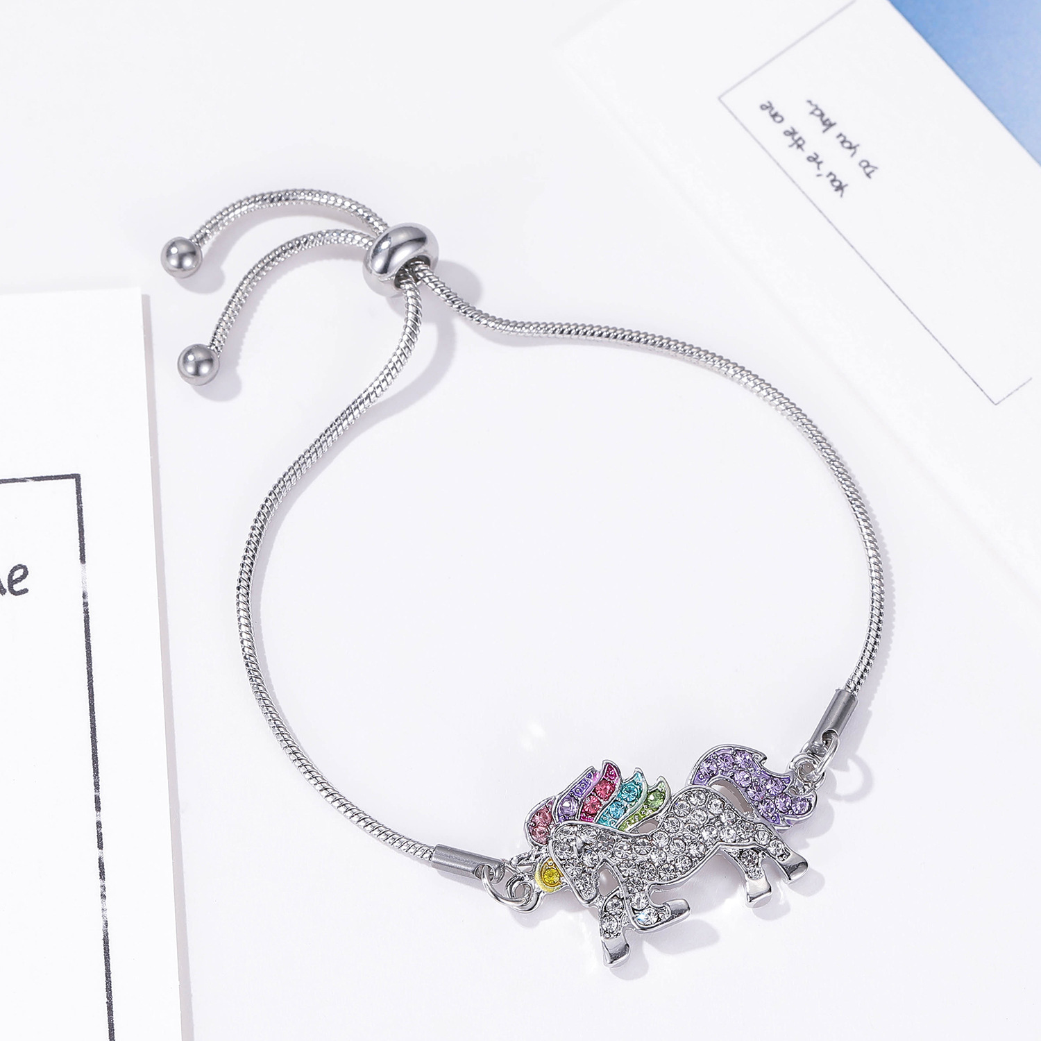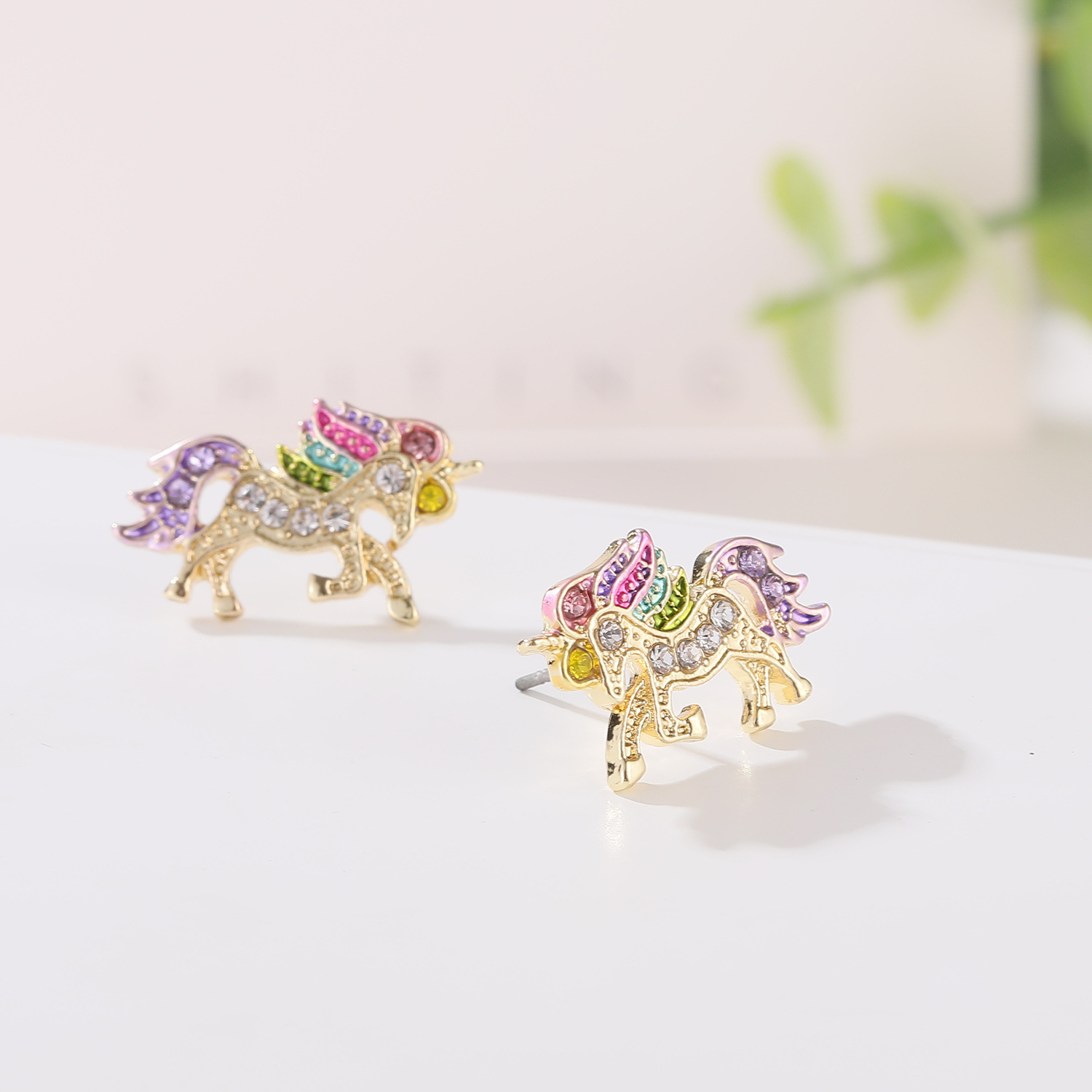 lega in zinco set di gioielli fashion, Orecchino a bottone & anello dito & Bracciale & Collana, Unicorno, placcato, 4 pezzi & per i bambini & con strass, nessuno, necklace length 40cm, bracelet length 23cm, Venduto da set